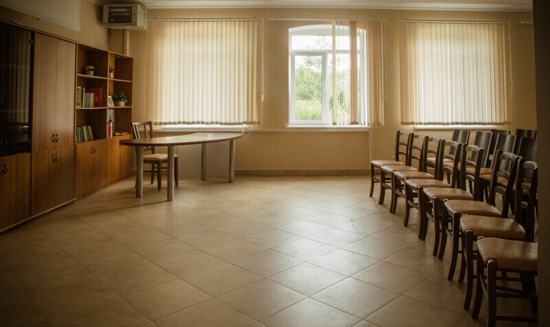 Вместимость 50 человек. Есть мощная музыкальная колонка, видео-проектор и большой плазменный телевизор.