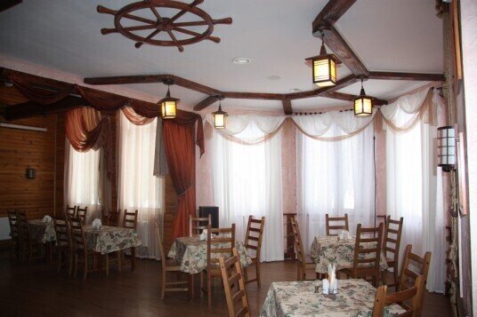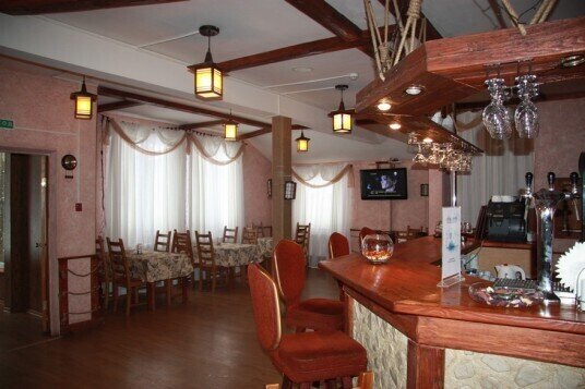 Зал ресторана принимает одновременно более 60 человек, удобен для проведения корпоративных мероприятий. Есть уголок с камином и роялем, идеальный для музыкальных вечеров.
