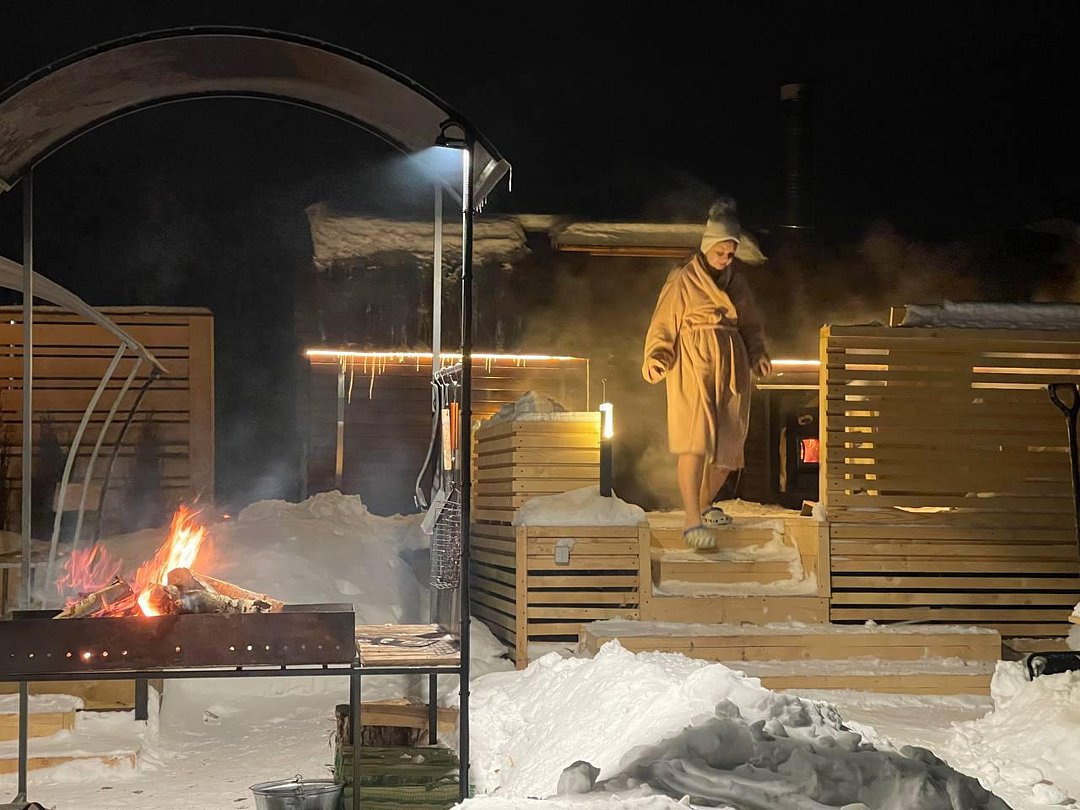 Вы сможете насладиться атмосферой полного релакса в русской бане на дровах, а японская горячая купель Офуро добавит особый шарм вашему отдыху. На территории есть уютные зоны для мангала и костров, где можно наслаждаться вечерними посиделками под звёздами. Возможно, вам захочется порыбачить на берегу реки — это отличный способ провести время на свежем воздухе. Кроме того, ждут вас захватывающие прогулки на квадроциклах по живописным маршрутам, которые дарят незабываемые эмоции.