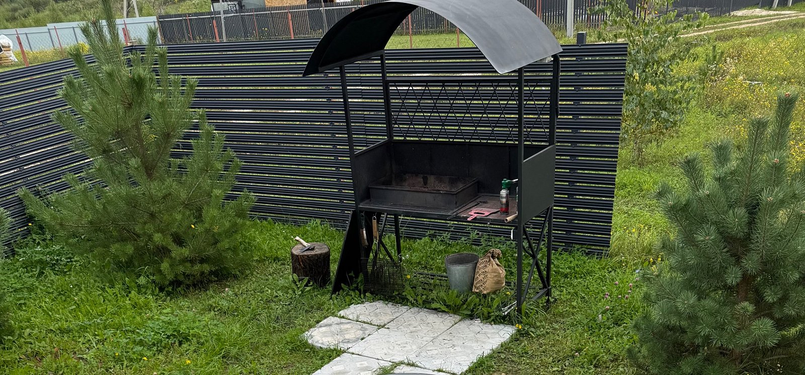 Оборудованная мангальная зона с бесплатной атрибутикой для мангала. Дрова, уголь и розжиг туда не входят. Оплачивается отдельно.