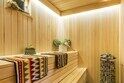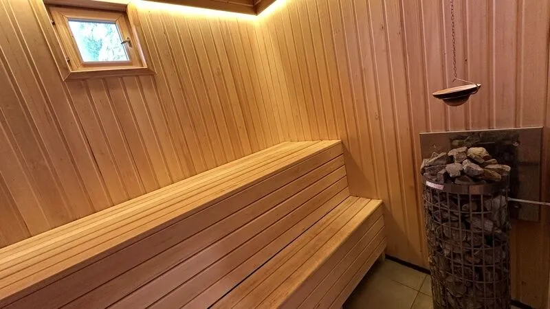У каждого коттеджа имеется собственная сауна. В саунах находится помещение для переодевания со столиком для чайных церемоний и душевой кабиной, а также парильное отделение с электрокаменной печью НАRVIA.