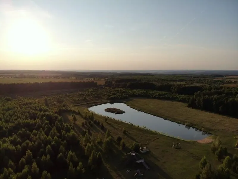 Самолетом до аэропорта г. Тула, далее 1 км до остановки общественного транспорта и на автобусе №170 двигаться до остановки «Ясногорск», далее сделать пересадку на автобус №176, 179 и двигаться до остановки «Подосинки-Лэнд», далее 1,67 км до коттеджного комплекса.