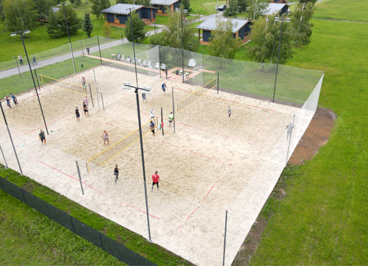 На территории комплекса есть зона барбекю, спортивные площадки, беседка и водоём с оборудованным песчаным пляжем. Летом гостям доступны в прокат велосипеды и самокаты, а в зимнее время — лыжи и тюбинги.