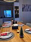 -просторная гостиная-столовая с видовыми панорамными 4-метровыми окнами в потолок и роскошной обеденной зоной на 8 гостей.