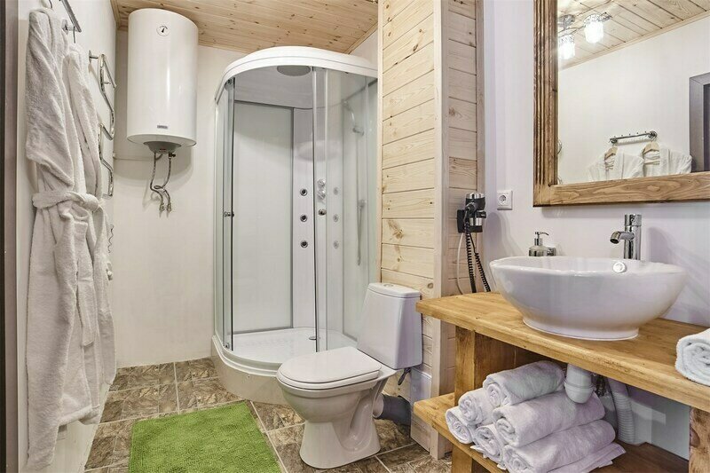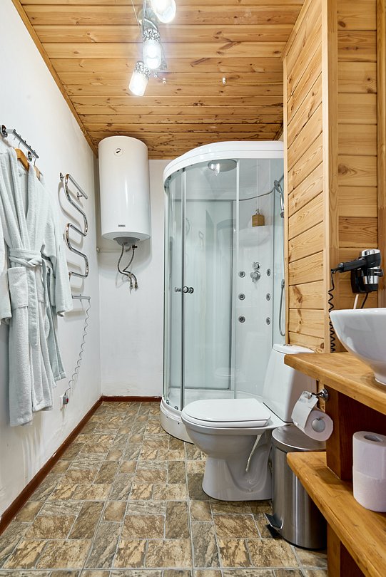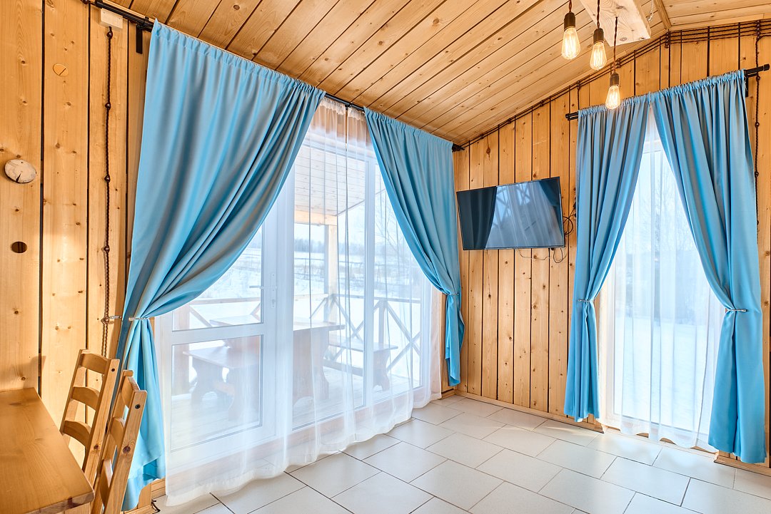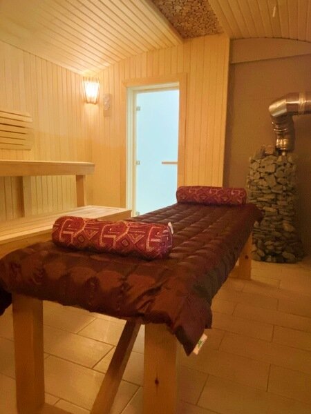 Инфраструктура: чан, зона отдыхаРасположение: выход к рекеУютная баня с дровяной печкой. В парной уникальное панорамное остекление и отдельный выход к реке прямо из парилки. Большая комната отдыха с шикарным видом на реку. Кедровая бочка для ароматерапии. Массажная зона и чан с теплой водой под открытым небом — все создано для идеального отдыха.