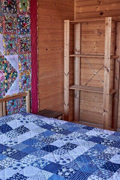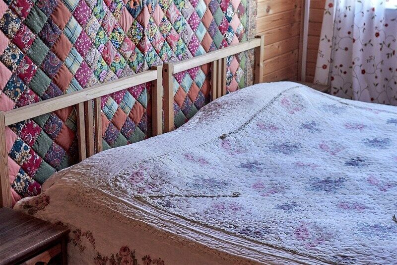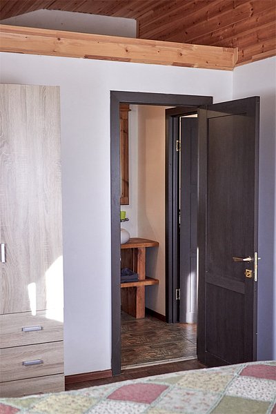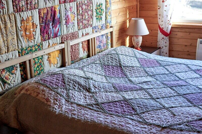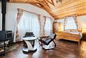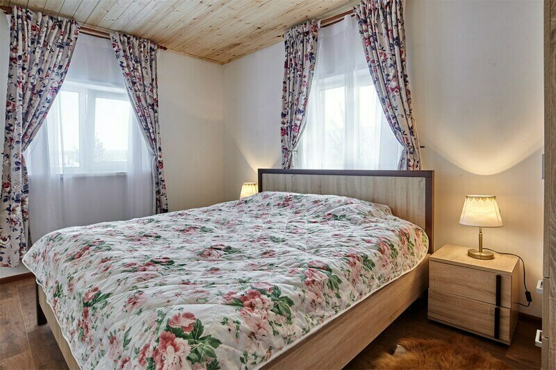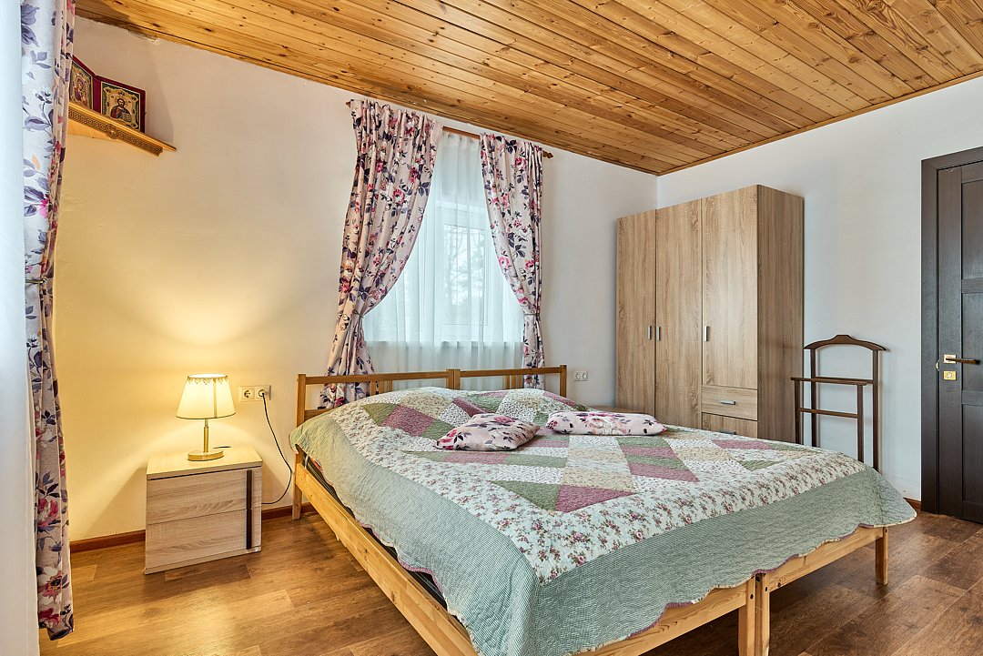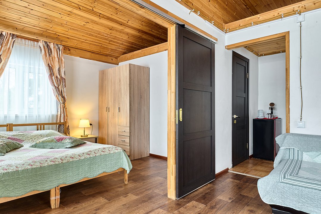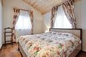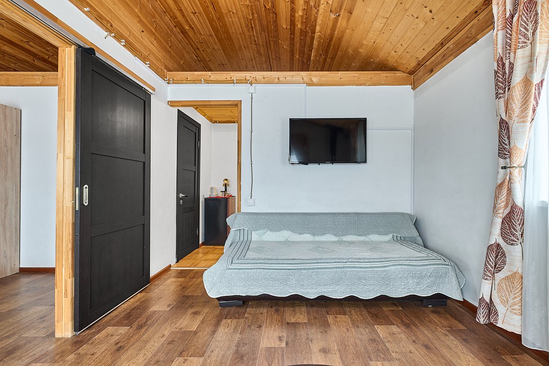 - Двуспальная кровать «king-size» под высокими двускатными потолками