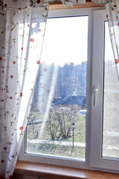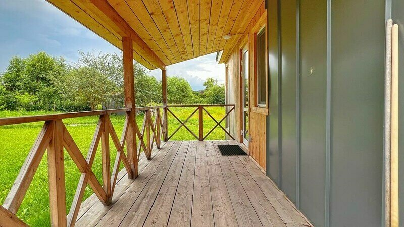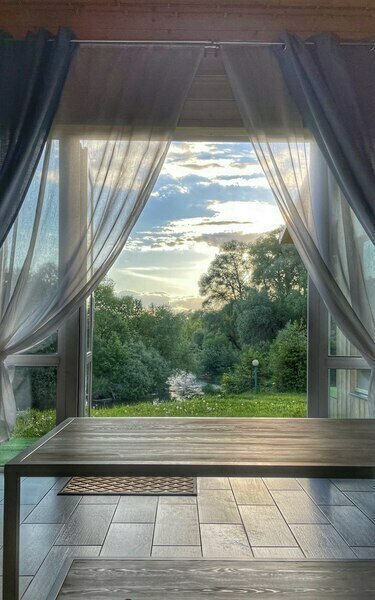 - Балкон с видом на яблоневый сад и сенокосные угодья
