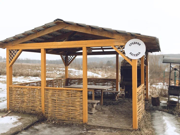А среди плакучих ив расположился небольшой зарыбленный пруд с большими карпами, сомиками и амуром.