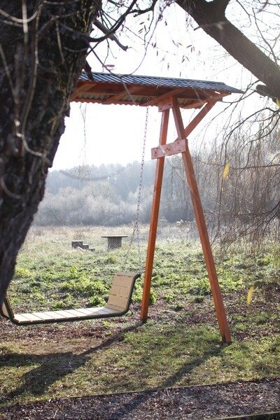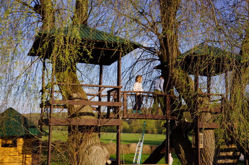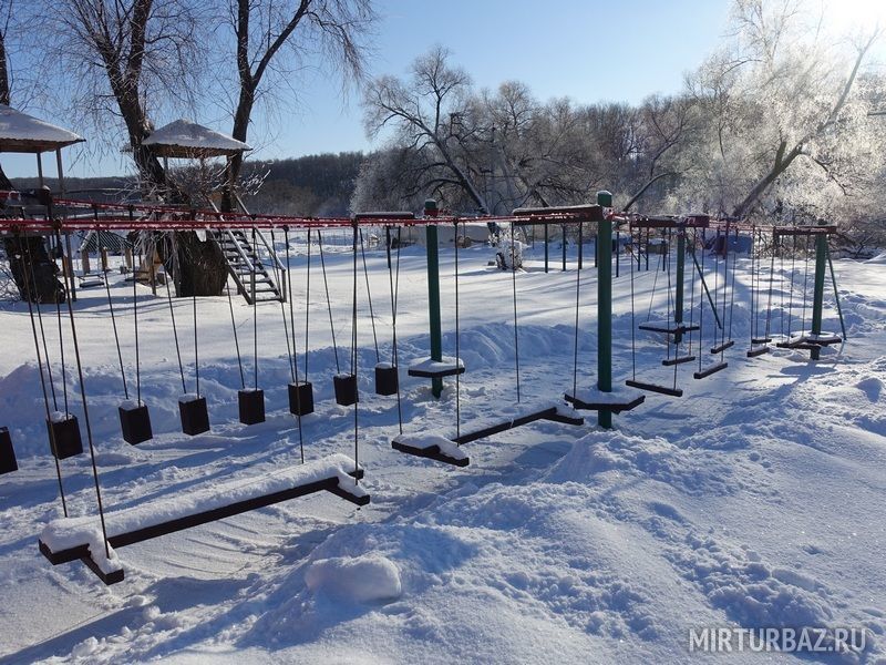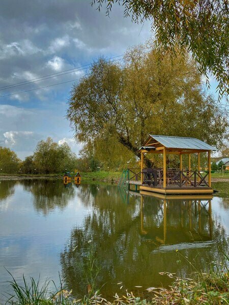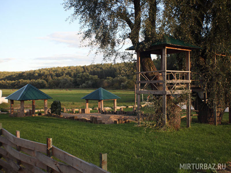 Очень понравилась зона отдыха, прудик, беседки, детская площадка с веревочным парком, домиком на дереве, качелями. -