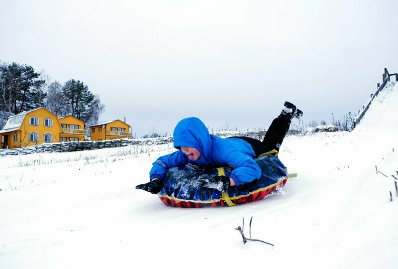 Лыжня общей протяженностью более 5 км. Деревянная горка напротив гостевых домов и естественные склоны в окрестностях разной степени экстрима.