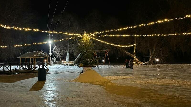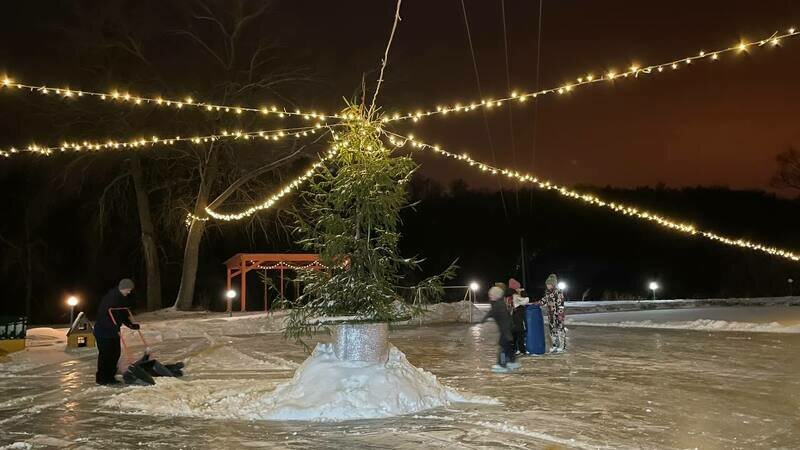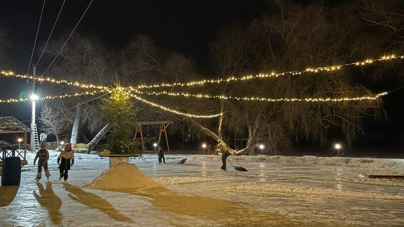 Каток площадью более 200 кв.м. с ночным освещением, гирляндами и уличной музыкой.