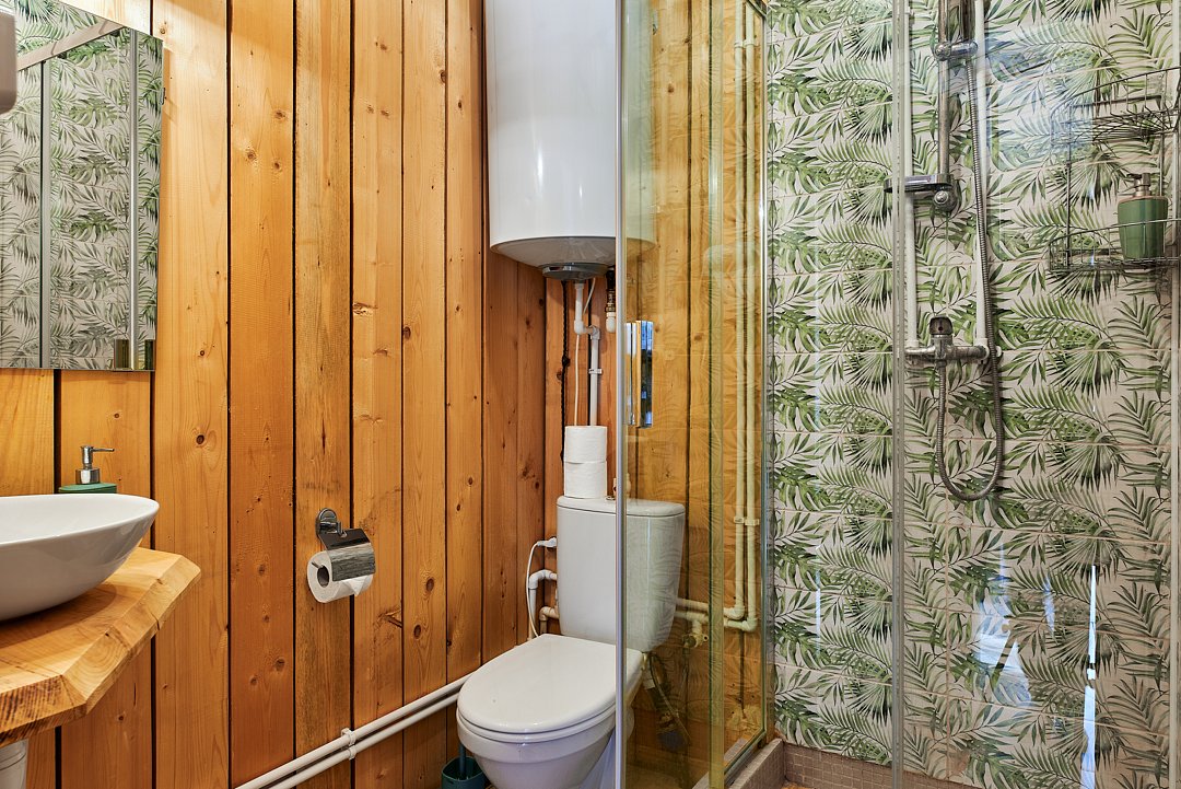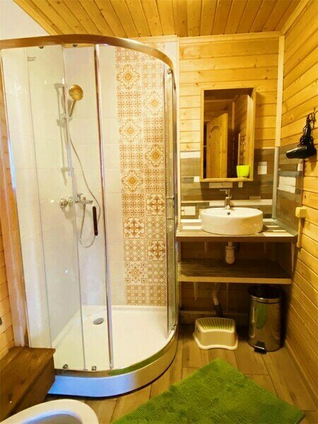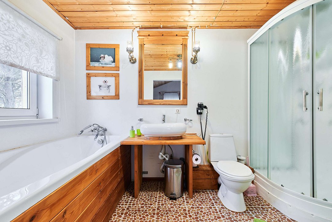 - Увеличенный санузел с окном оборудован большой душевой и ванной
