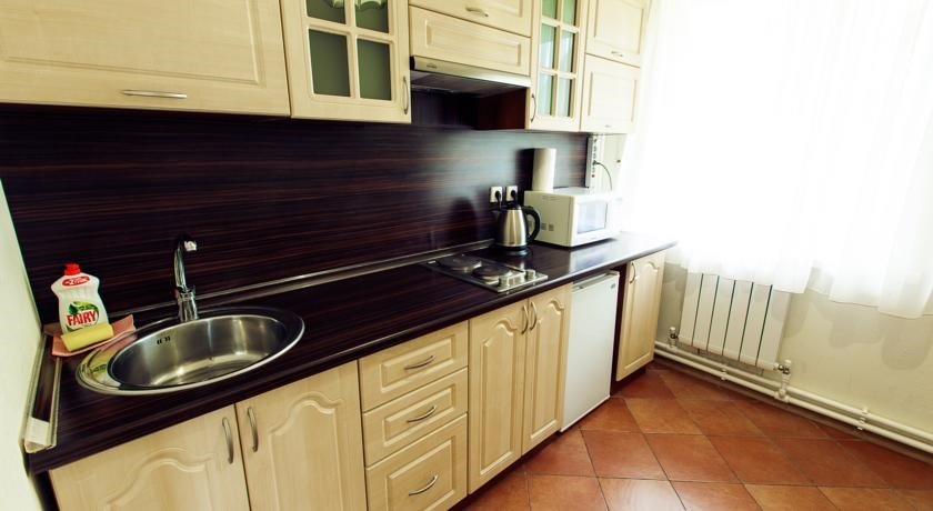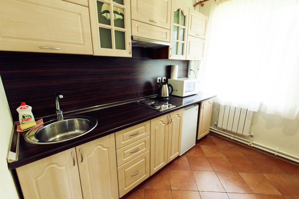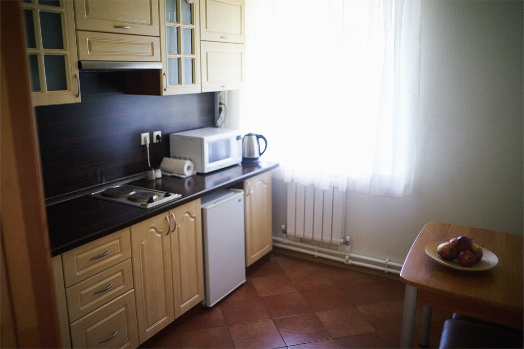 Отдельное двухэтажное строение площадью 80 м2, оформленное в современном стиле, обеспечивает комфортабельное размещение от 6 до 8 человек. Данный вариант отлично подойдет для большой семьи или теплой компании друзей. В планировку включено все необходимое для проживания. На входе Вас встречает просторная прихожая с большим шкафом-купе для верхней одежды. Гостиная со спутниковым телевидением и удобной мягкой мебелью, имеет выход на небольшой балкон с террасой. Кухня оснащена полным набором техники (плита, микроволновая печь, электрический чайник, холодильник). На втором этаже две уютные спальни, оформленные по-домашнему в светлых тонах и укомплектованные удобной мебелью. На втором этаже просторный санузел с биде и душевой кабиной оформлен в современной черно-белой гамме, на первом этаже санузел с душевой кабиной в ярком красно-белом цвете. Гости номера "Вилла "De Luxe" получают Wifi интернет в общественных зонах, бесплатную парковку.Услуги и удобства