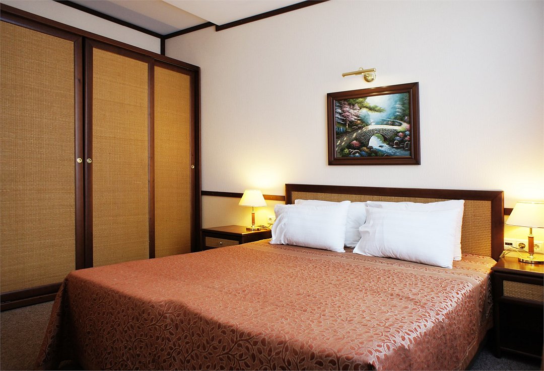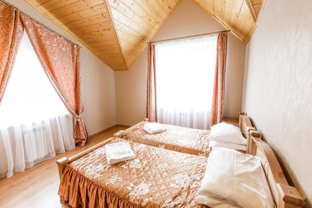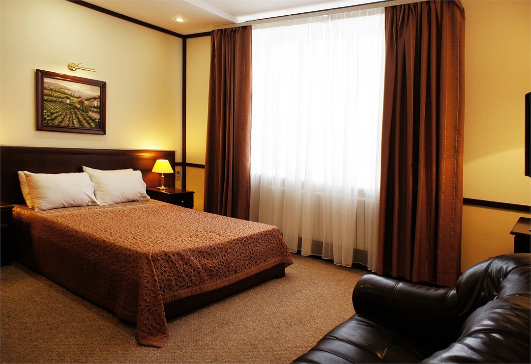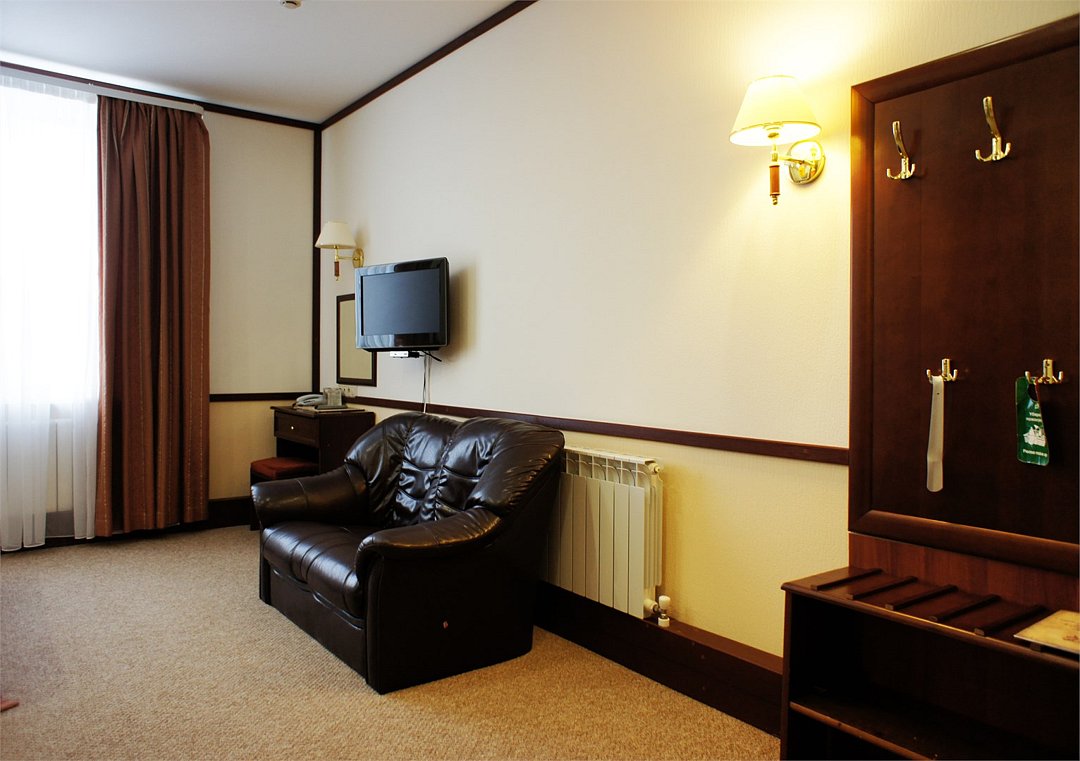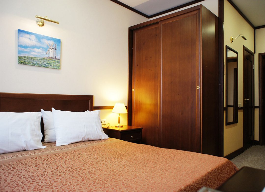 Номер «Комфорт» превосходный вариант для почитателей классических, строго выдержанных интерьеров. Номер включает в себя одну зонированную комнату общей площадью 22 м2, в которой могут расположиться до 3 человек. Здесь имеется небольшая зона отдыха с мягким диванчиком и журнальным столиком. Удобные кровати с ортопедическими матрацами позволят Вам комфортно выспаться. К Вашим услугам вместительный шкаф-купе, холодильник, телефон, телевизор, сейф. В ванной комнате, оснащенной душевой кабиной, раковиной, с/узлом, Вам бесплатно предоставлены средства личной гигиены. Гости номера "Комфорт" получают Wifi интернет в общественных зонах, бесплатную парковку.Услуги и удобства