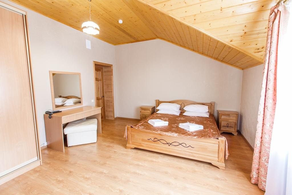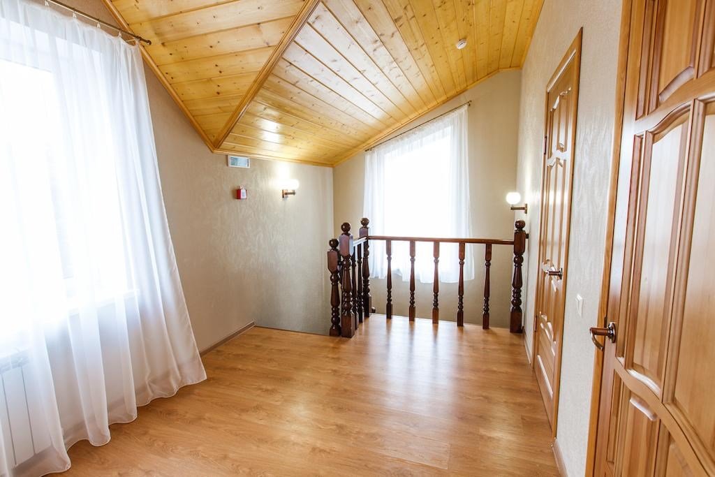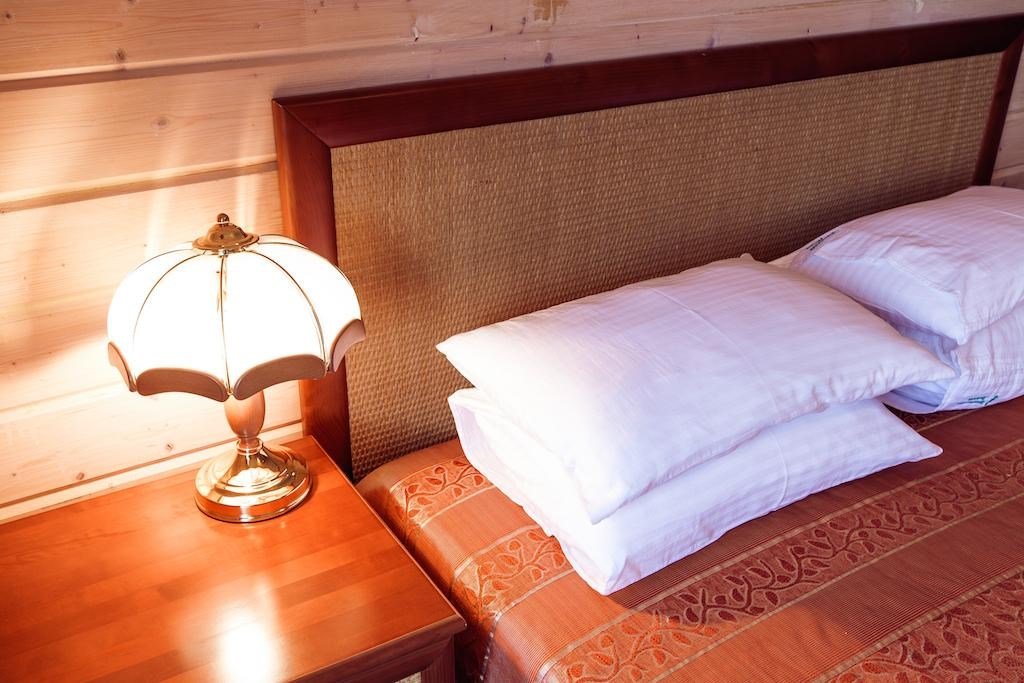 Коттедж подойдет для семей, которые ищут не просто номер в загородном отеле, а возможность удобного размещения с детьми. Двухэтажные домики при стандартном размещении вмещают до 4 человек и оснащены всем необходимым для беззаботного отдыха. Кроме двух уютных спален на втором этаже, с удобными ортопедическими кроватями, есть балкон с террасой, объединяющий эти спальни. На первом этаже в доме есть полностью оборудованная кухня, гостиная с большим угловым диваном, ЖК-телевизором, Для удобства проживающих, в доме есть санузел на первом этаже и на втором этаже санузел с душевой кабиной. Гости номера "Коттедж" получают Wifi интернет в общественных зонах, бесплатную парковку.Услуги и удобства