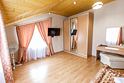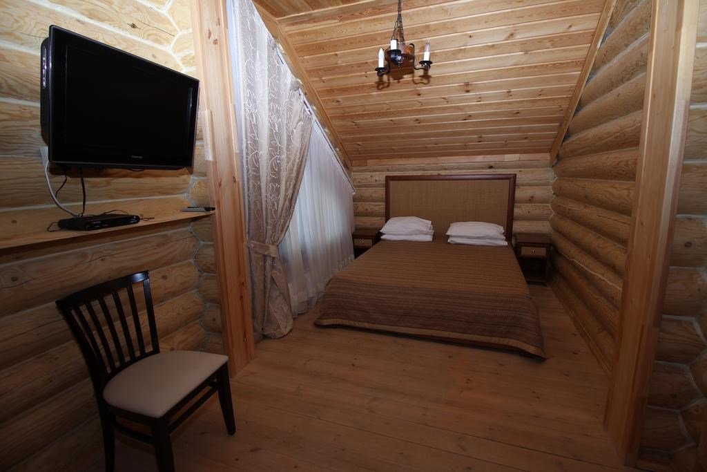 Большой двухэтажный сруб, готовый вместить от 6 до 8 человек располагается на отдельной территории гостиницы. На территории при доме есть собственная зона парковки, перед домом на открытом пространстве расположена мангальная зона, вокруг дома, вдоль тропинок устроены места с лавочками для отдыха и уединения. Для любителей экологически чистого отдыха, дом идеально подходит для проживания. Дом из сруба - это комфортный микроклимат в помещениях, с оптимальными показателями температуры и влажности. На первом этаже прихожая, зона кухни - столовой со всей необходимой техникой и посудой, просторный холл с мягкой мебелью и телевизором со спутниковым телевидением. Для проживающих оборудованы 3 спальни и 2 санузла. Это один из самых комфортабельных видов проживания в комплексе, который прекрасно подходит для семейного отдыха. Гости номера "Вилла "Русская усадьба" получают Wifi интернет в общественных зонах, бесплатную парковку.Услуги и удобства