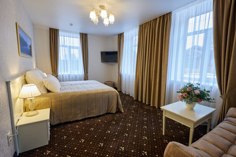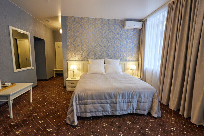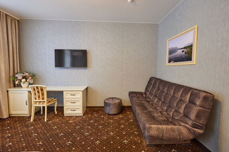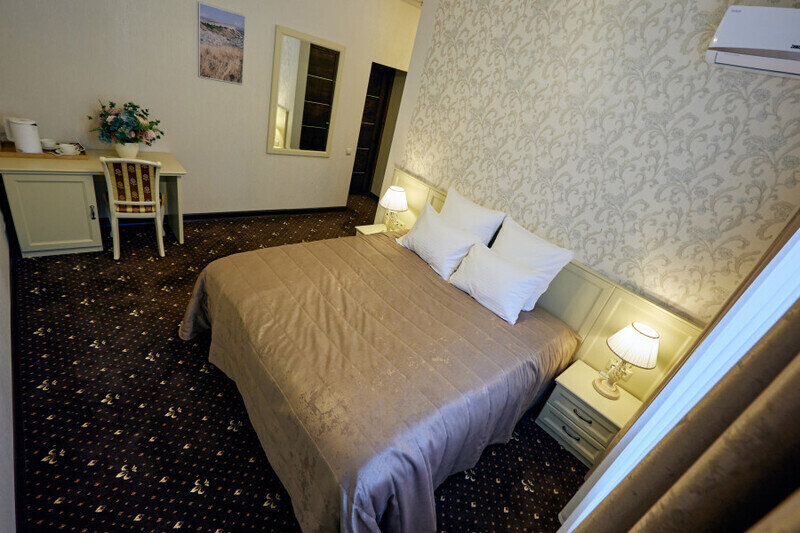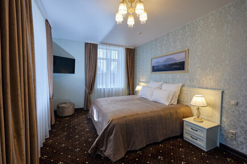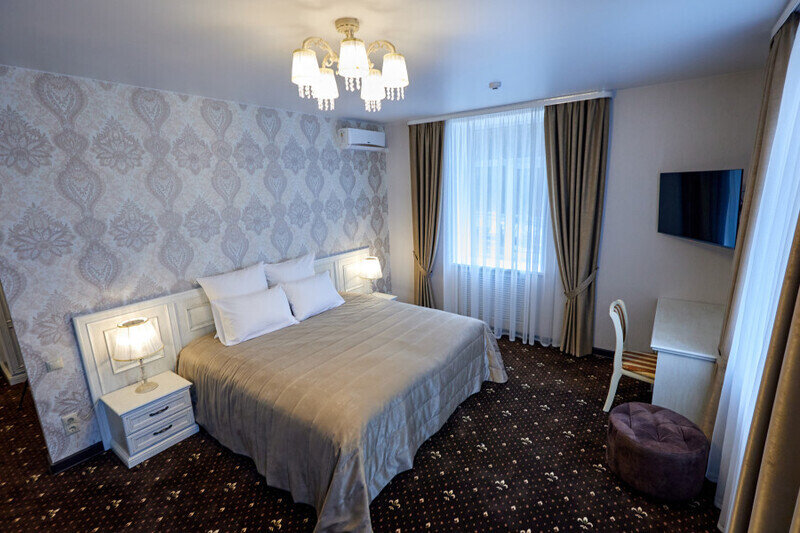Номер выполнен в светлой пастельной гамме и современном дизайне. Данный уютный номер прекрасно подходит как для работы, так и для отдыха.
