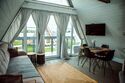 Семейный отдыхДостоинстваВеликолепный сервис, вежливый и приятный персонал. Отдыхали в домике с домашним питомцем, при заселении уточнили требуется ли что-то для него. Вкусная кухня и быстрая доставка в домик. Полный набор принадлежностей для комфортного проживания.