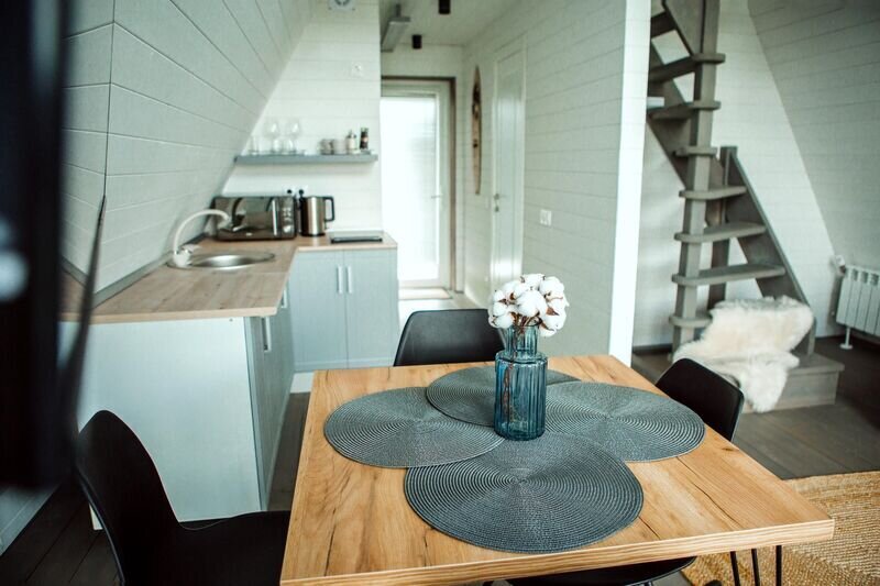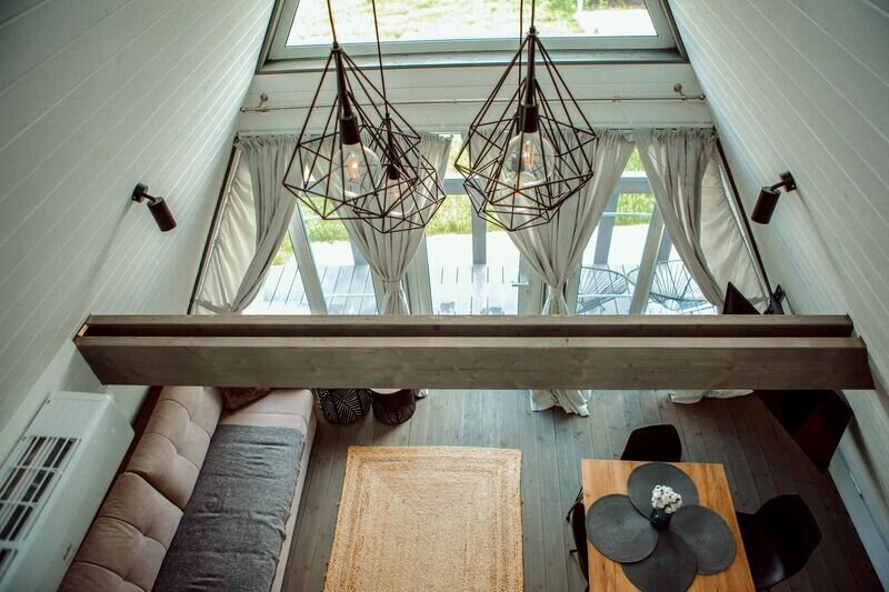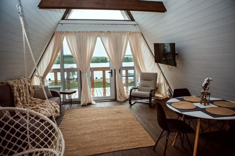 Дом A-Фрейм Мини идеально олицетворяет скандинавский дизайн с использованием нейтральных цветов, минимализма и натуральных материалов. Этот уютный дом, вдохновленный природой, с просторным помещением, светлым деревом, пастельными тонами и идеальным расположением для приятного отдыха.