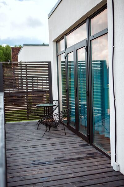 Отдых с друзьямиДостоинстваБольшая территория, красиво. Вкусный завтрак в домик. Хаммам, сауна тоже отличные, бассейн на улице)
