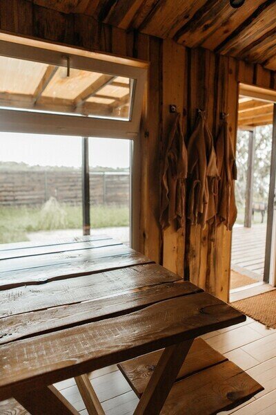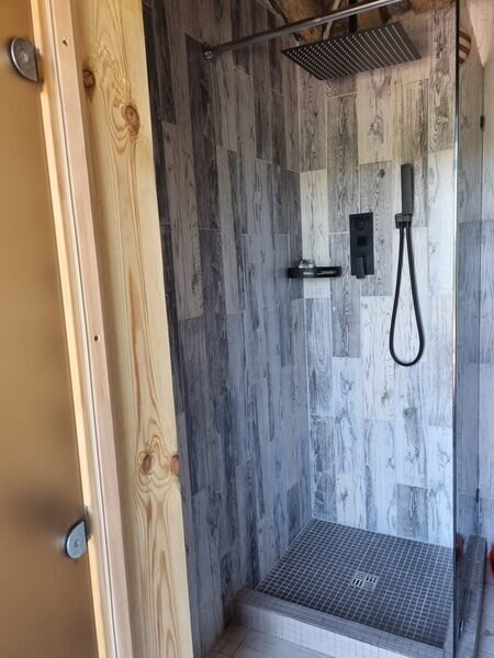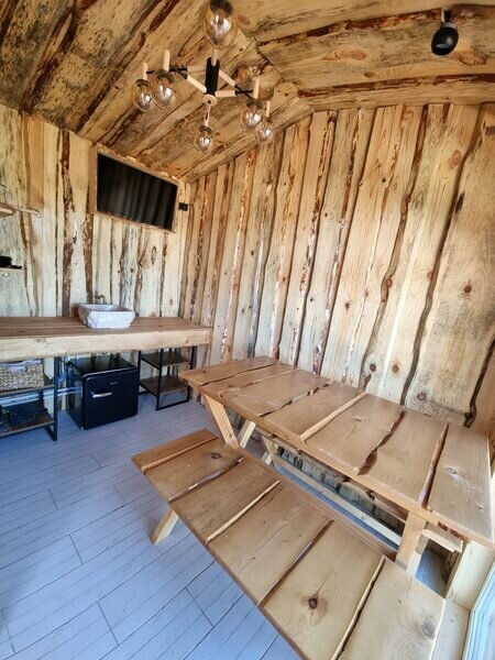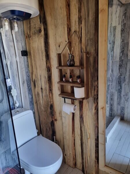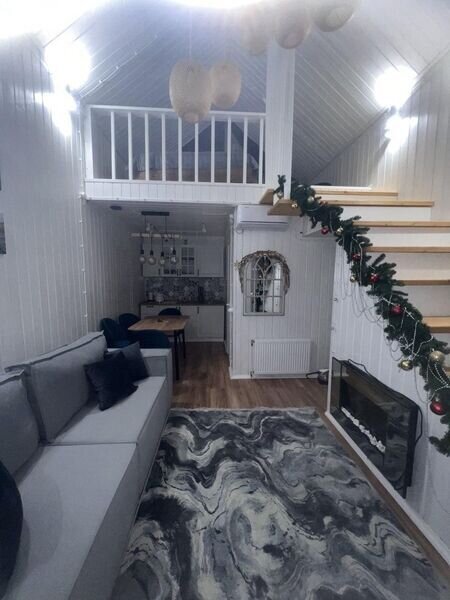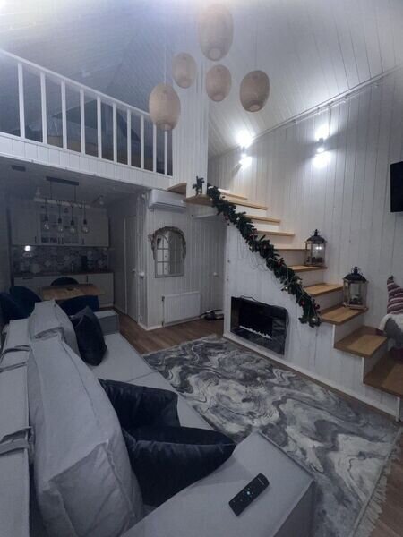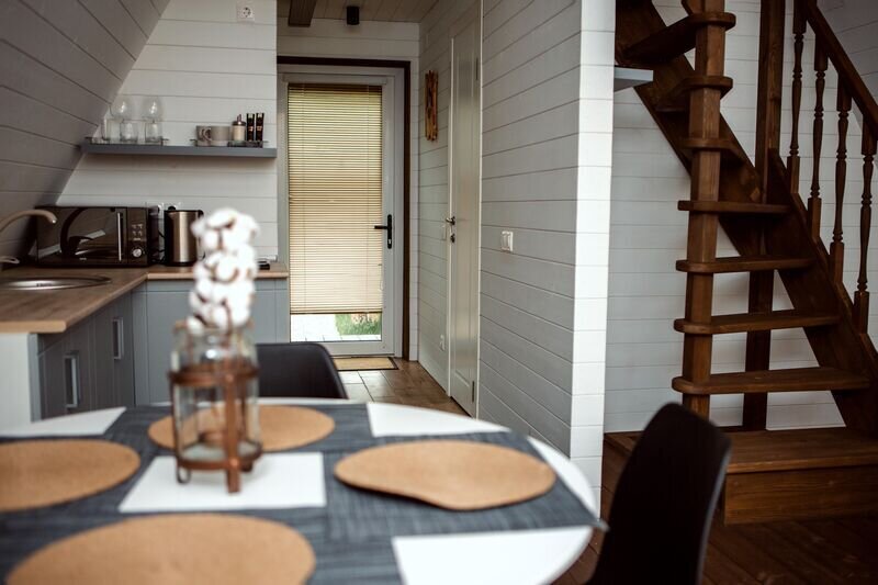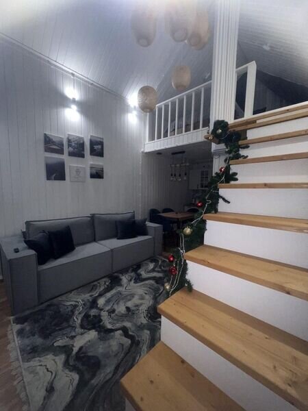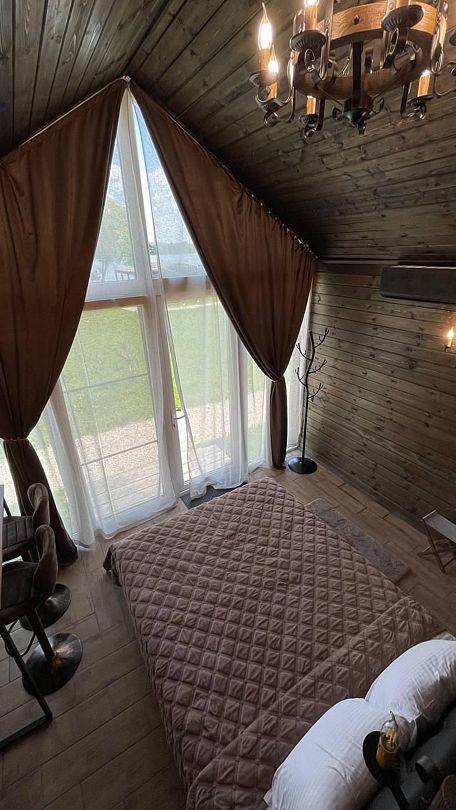 БарнХаус — это домик с мини-кухней, ванная комната с душевой кабиной и спальней на втором этаже с кроватью queen size. Также имеется терраса с уличной мебелью и пледами для приятного времяпрепровождения на свежем воздухе. Этот домик представляет собой отличный выбор для спокойного отдыха на природе, обеспечивая комфорт и удобства проживания.