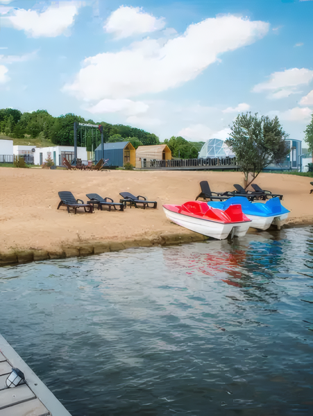 Пляж и пирс оборудованы по всем правилам безопасности и предоставляют возможность как для размеренного плавания, так и для активных водных игр (например, прыжки в воду).