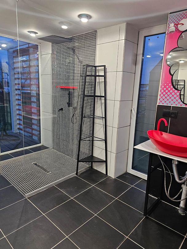 - огромная душевая комната;