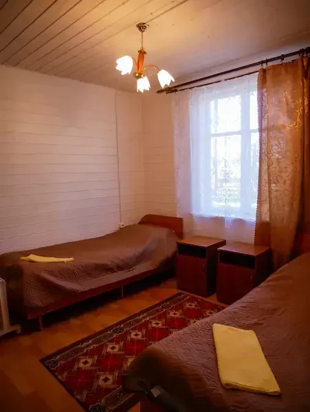 2 этаж: спальная комната, в которой 2 односпальные кровати, прикроватные тумбы, 2 комплекта постельного белья.