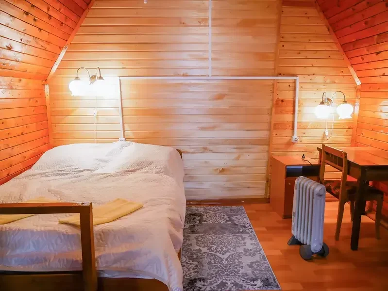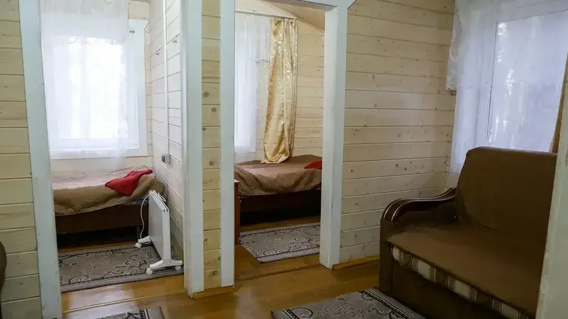 Индивидуальные 2-х комнатные 4-х местные коттеджи, каждый из которых оснащен спутниковым телевидением, индивидуальным газовым отоплением, постоянной подачей электричества, холодной и горячей воды.