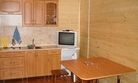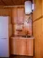 кухня-гостиная, в которой располагаются кресло-кровать, журнальный столик с телевизором, кухонный стол со стульями, холодильник, электро-варочная поверхность, раковина, кухонный гарнитур с необходимым набором посуды, рассчитанным на 6 персон (столовые приборы, глубокие и мелкие тарелки, стаканы и стопки, чайный сервиз), а также набором посуды для приготовления пищи (набор кастрюль, сковорода, чайник, кухонный и консервный ножи, разделочная доска) и другой кухонной утварью;