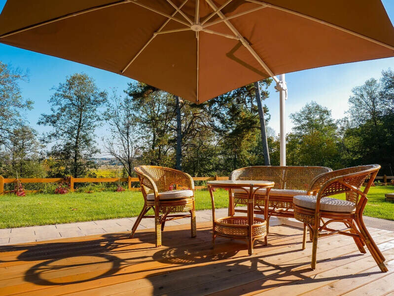 На улице располагается индивидуальное место для отдыха, оборудованное столиком и лавочками.