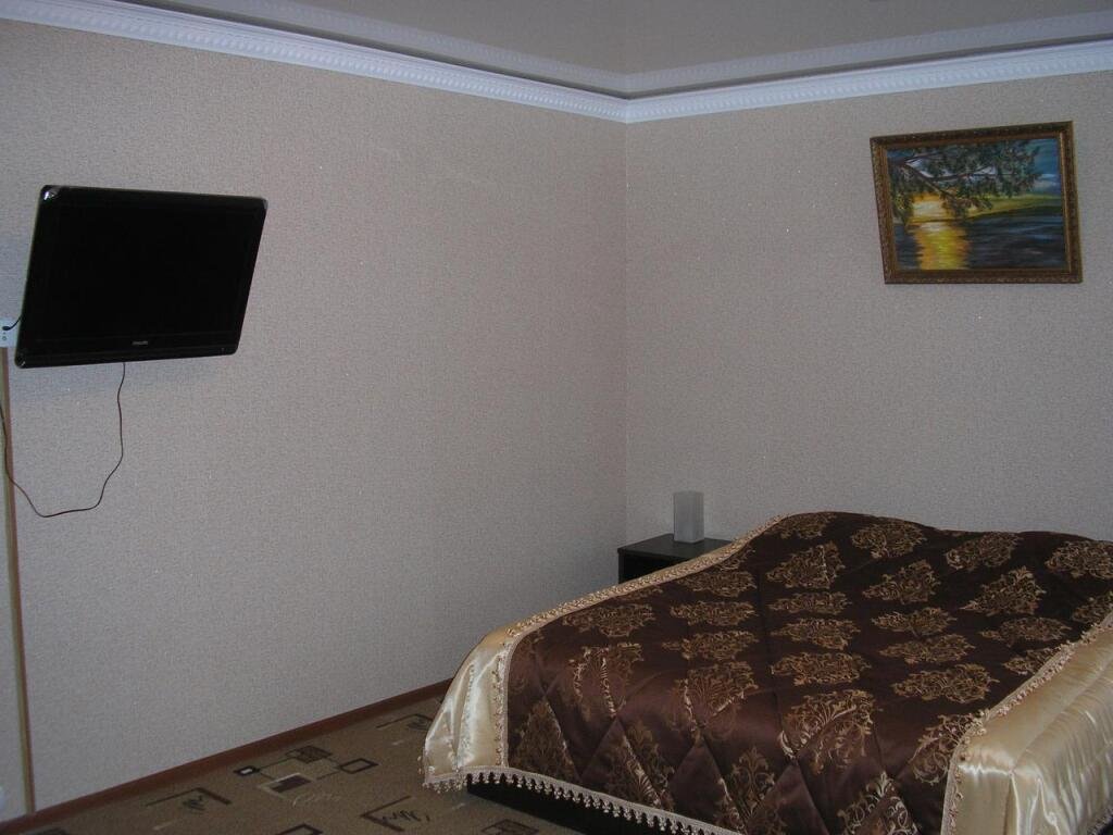 Двуспальные кровати, душевая кабина, туалет, микроволновая печь, холодильник, посуда, телевизор