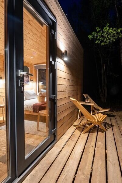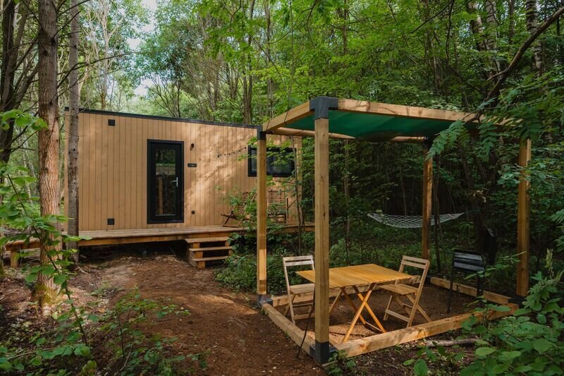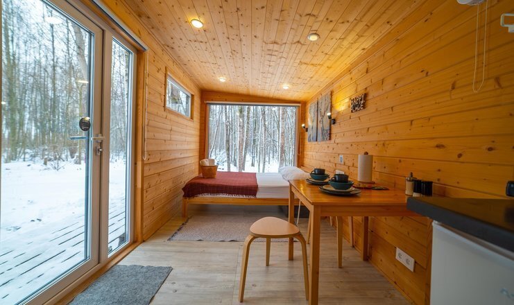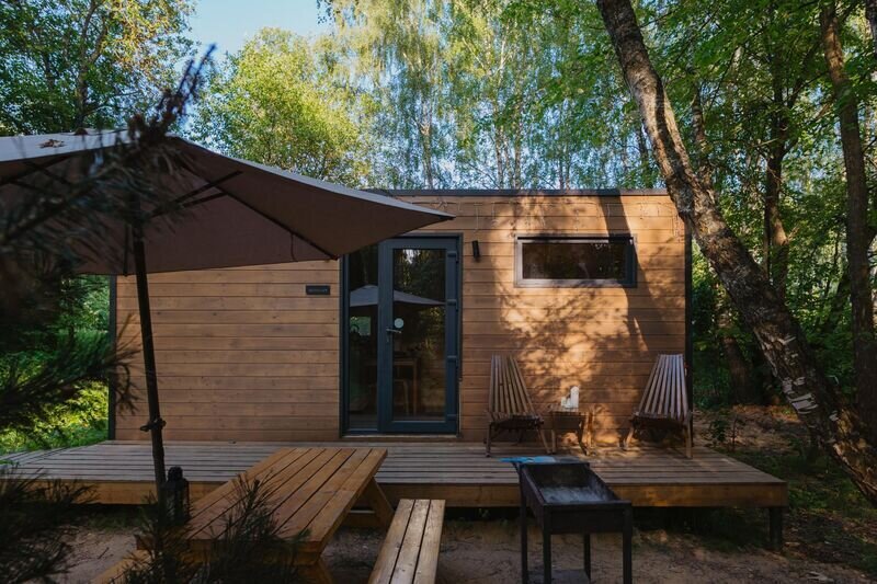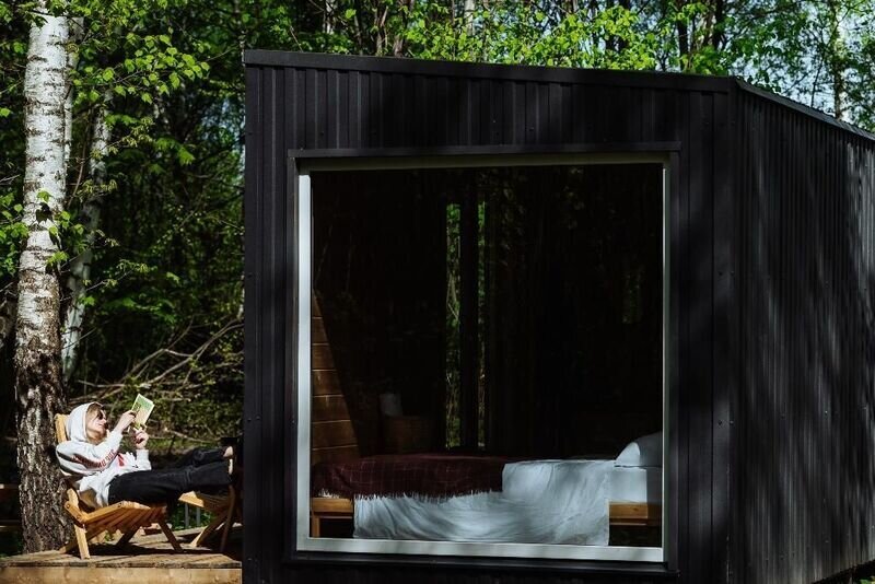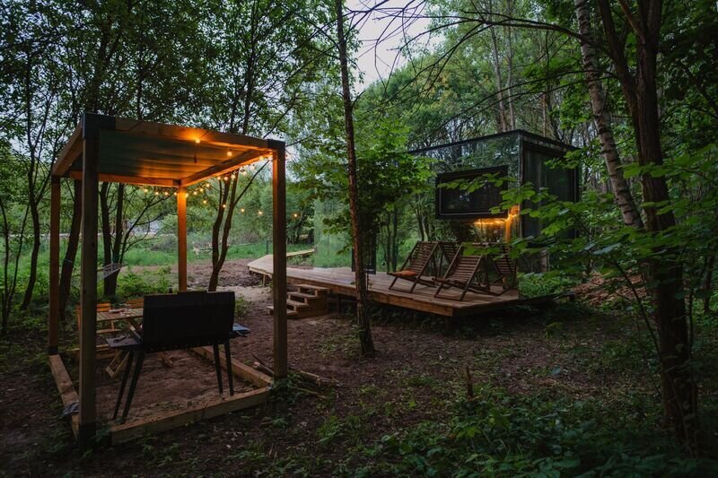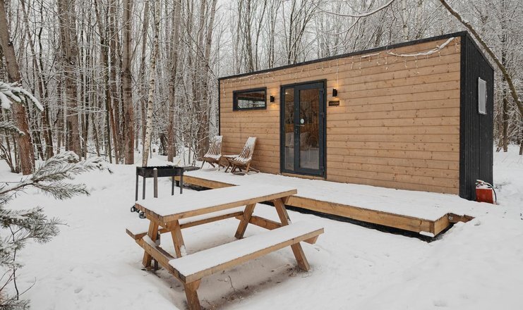 Глэмпинг «Терруар» предлагает уютные скандинавские домики для отдыха в живописном месте на границе Московской и Тульской областей.
