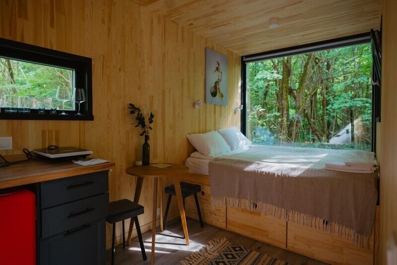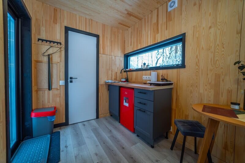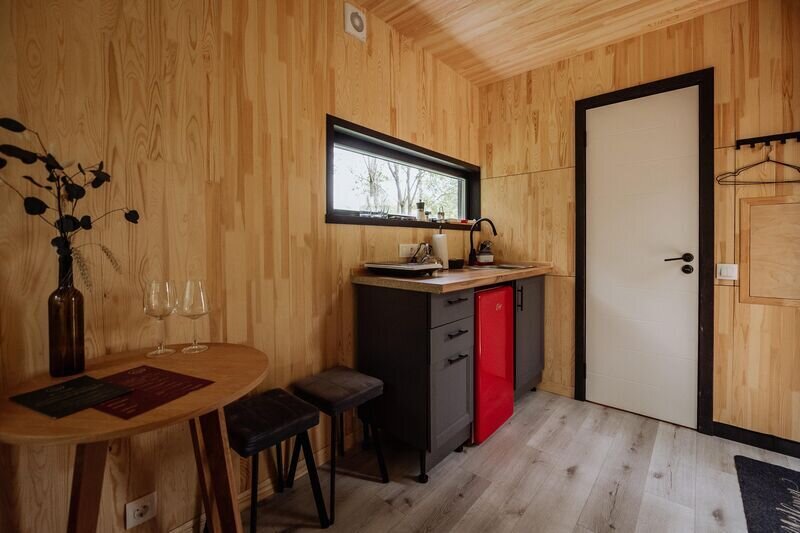 Домики расположены в окружении прекрасной природы, где гости могут насладиться тишиной и покоем. Каждый домик оборудован всем необходимым для комфортного проживания. Внутри гости найдут уютную спальню, гостиную, полностью оборудованную кухню и собственную ванную комнату. Также есть возможность остановиться в домиках с сауной, где можно расслабиться и насладиться баней.