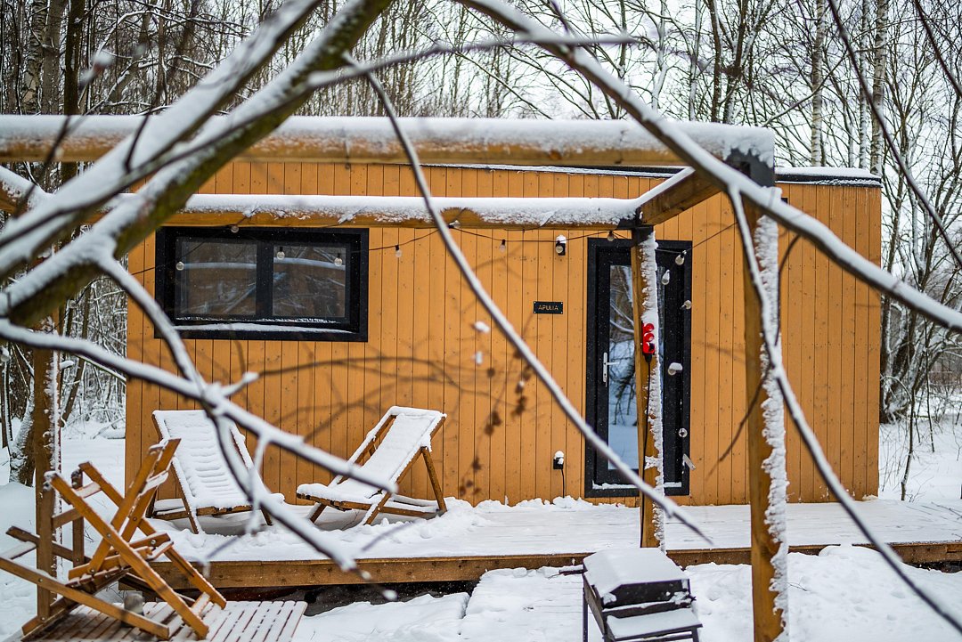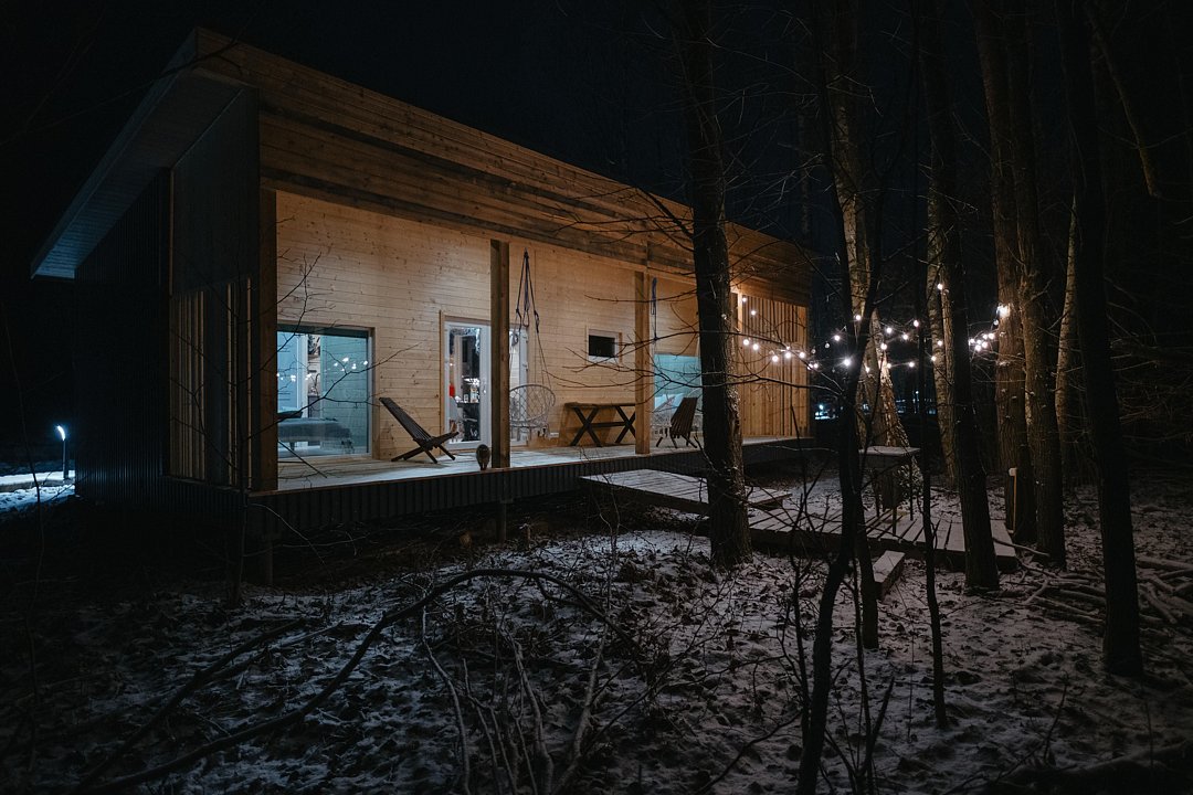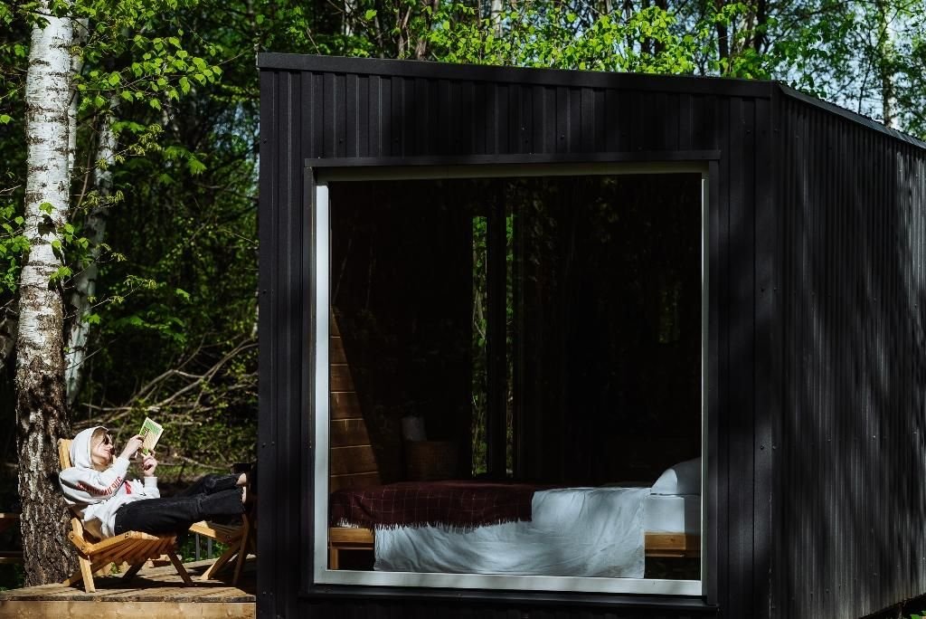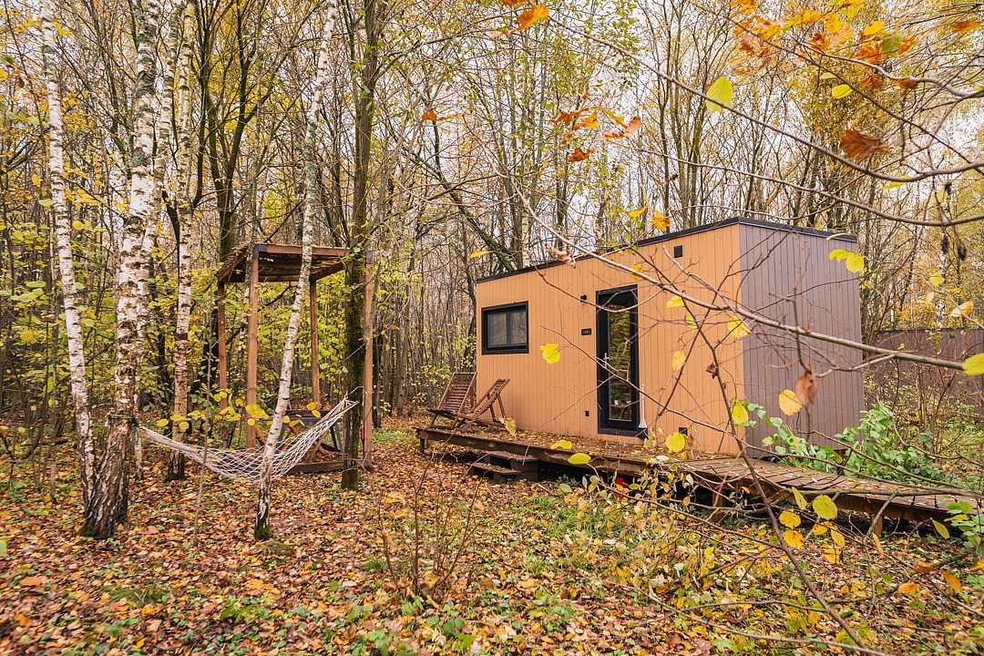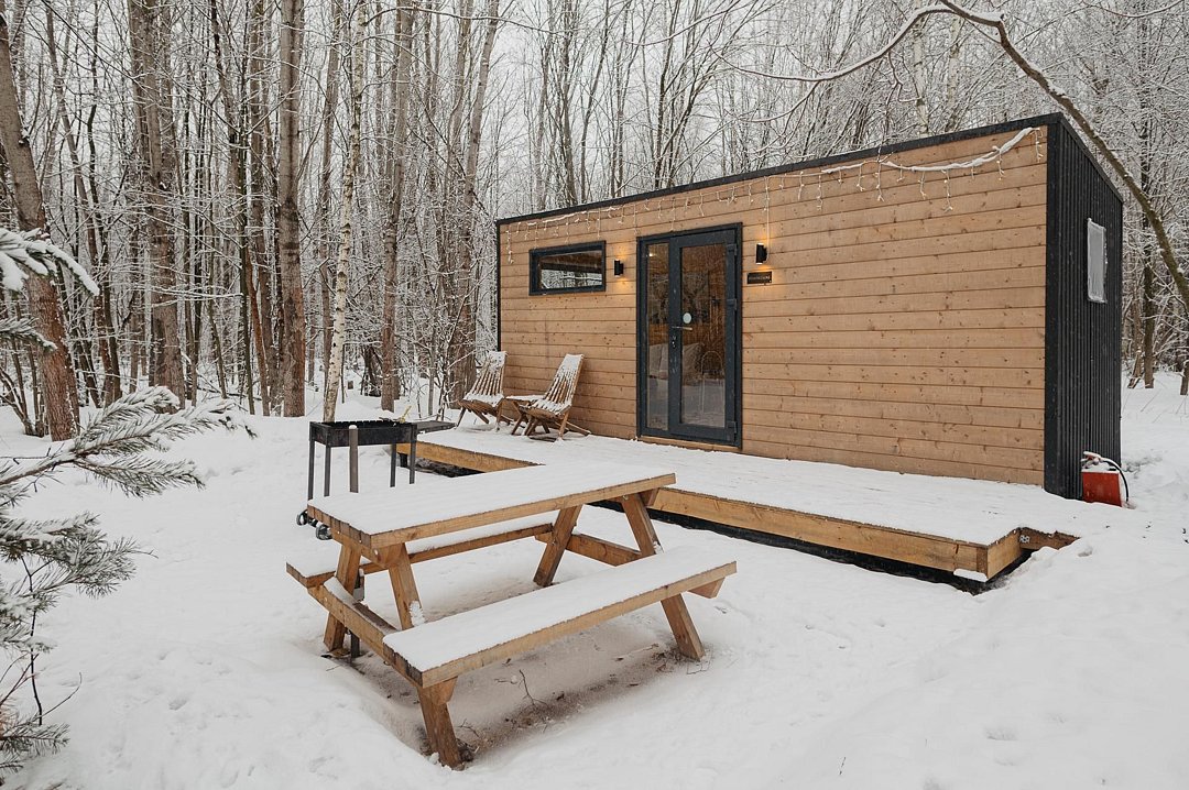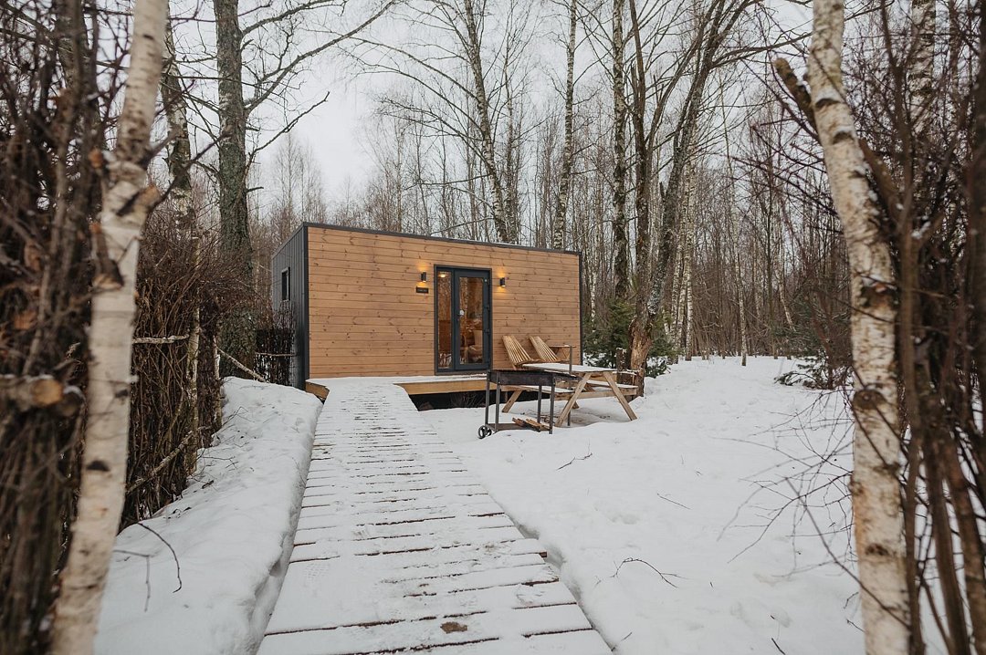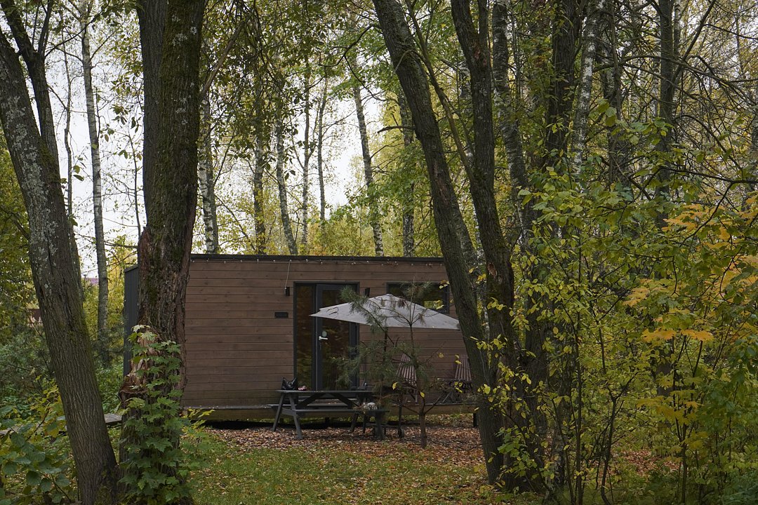 Глэмпинг «Терруар» предлагает уютные скандинавские домики для отдыха в живописном месте на границе Московской и Тульской областей.