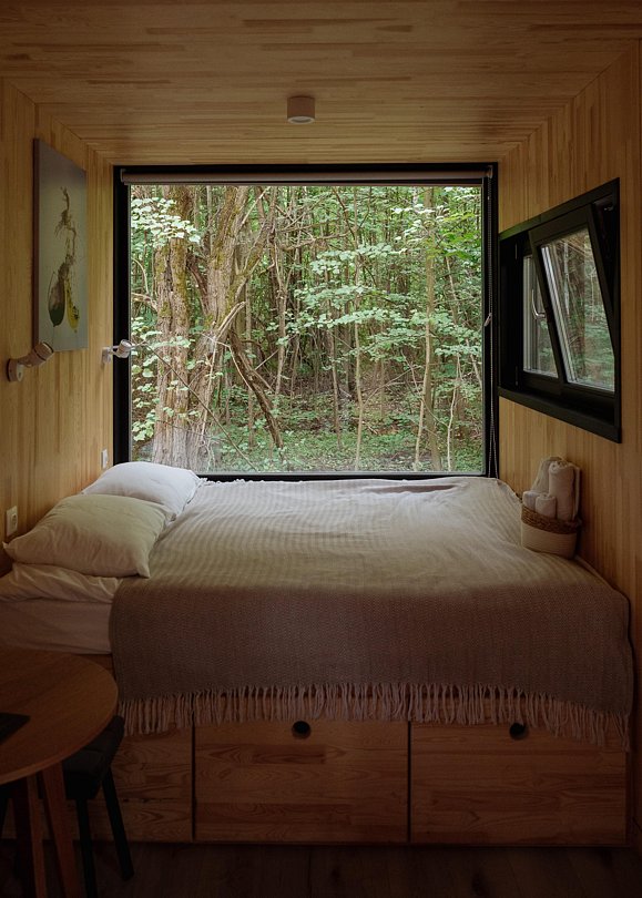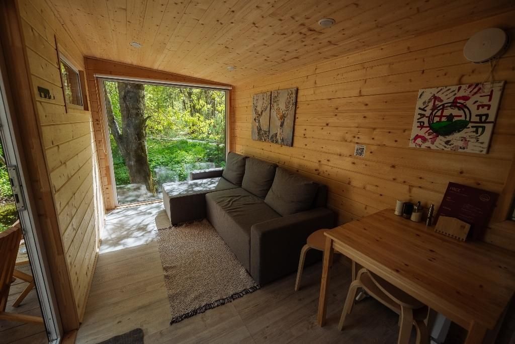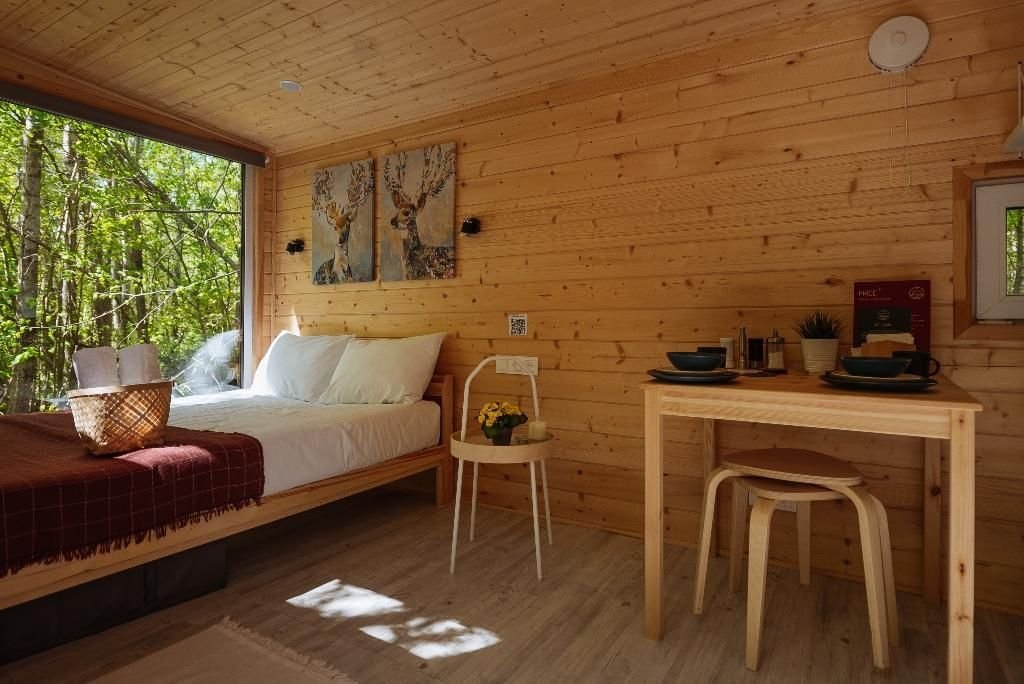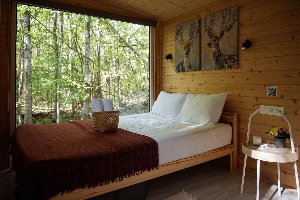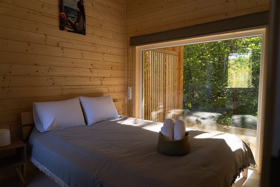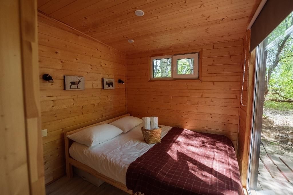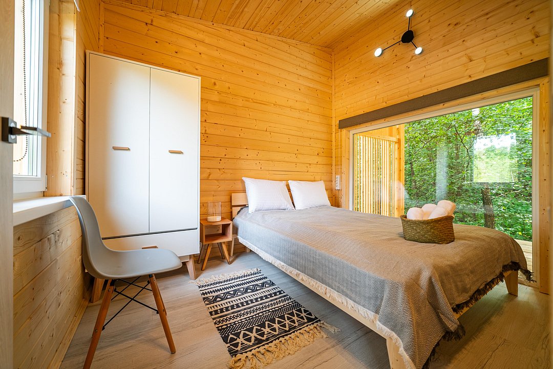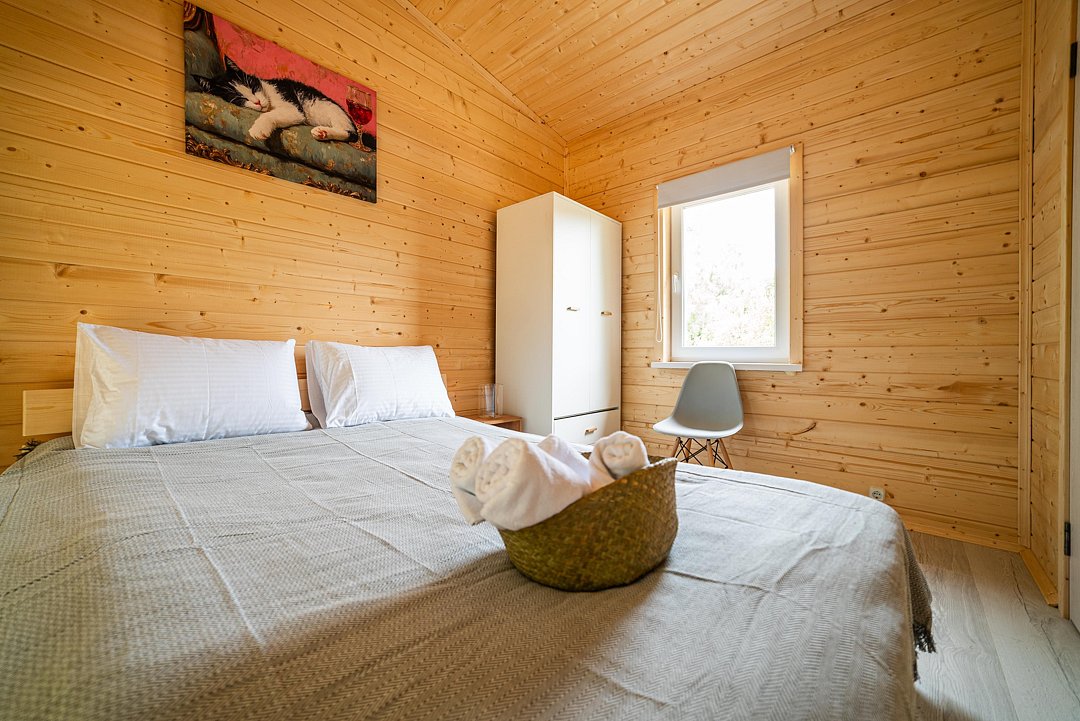 Домики расположены в окружении прекрасной природы, где гости могут насладиться тишиной и покоем. Каждый из них оборудован всем необходимым для комфортного проживания. Внутри гости найдут уютную спальню, гостиную, полностью оборудованную кухню и собственную ванную комнату. Рядом оборудована мангальная зона.