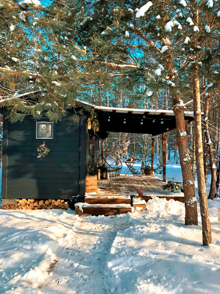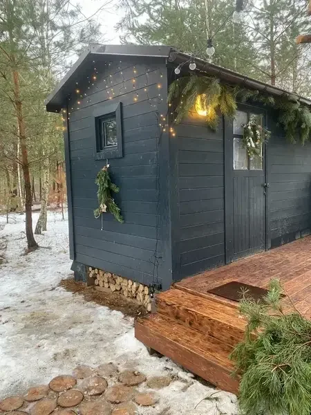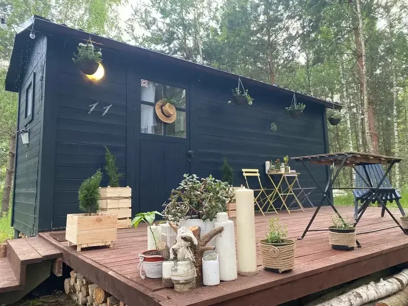 TinyDacha Можжевельник — это мини-домик для уютного отдыха в заповедном лесу.