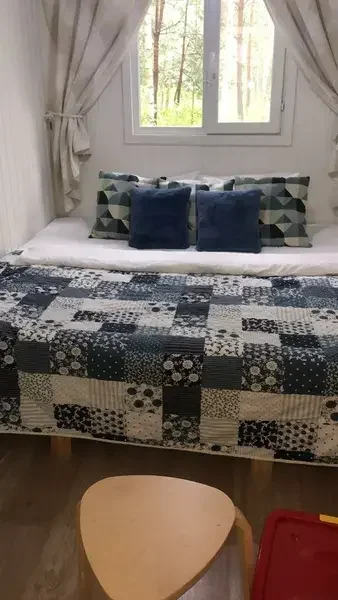 Домик «TinyDacha Можжевельник» расположен в заповедном лесу, где царит тишина и спокойствие, идеальное место для отдыха от городской суеты. Неподалеку от базы отдыха находится ресторан «Амбар», где можно заказать питание по системе «шведский стол», а также могут доставить завтрак в постель.