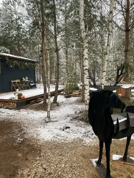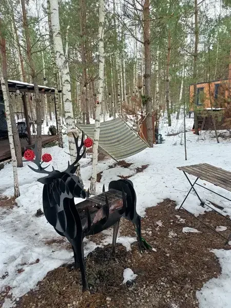 Рядом с домиком находится уникальный мангал в форме оленя.