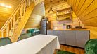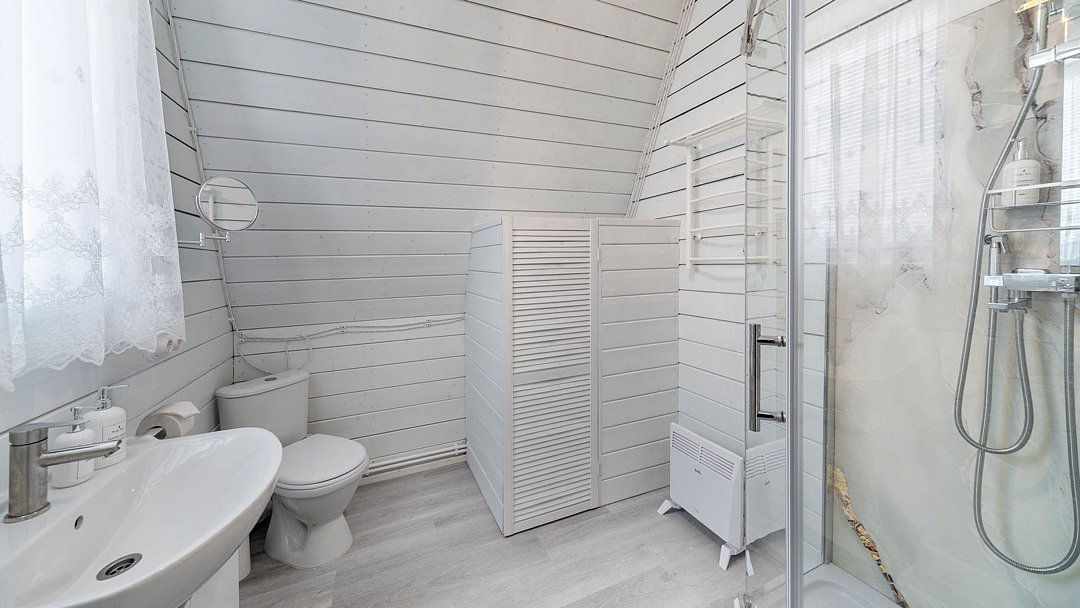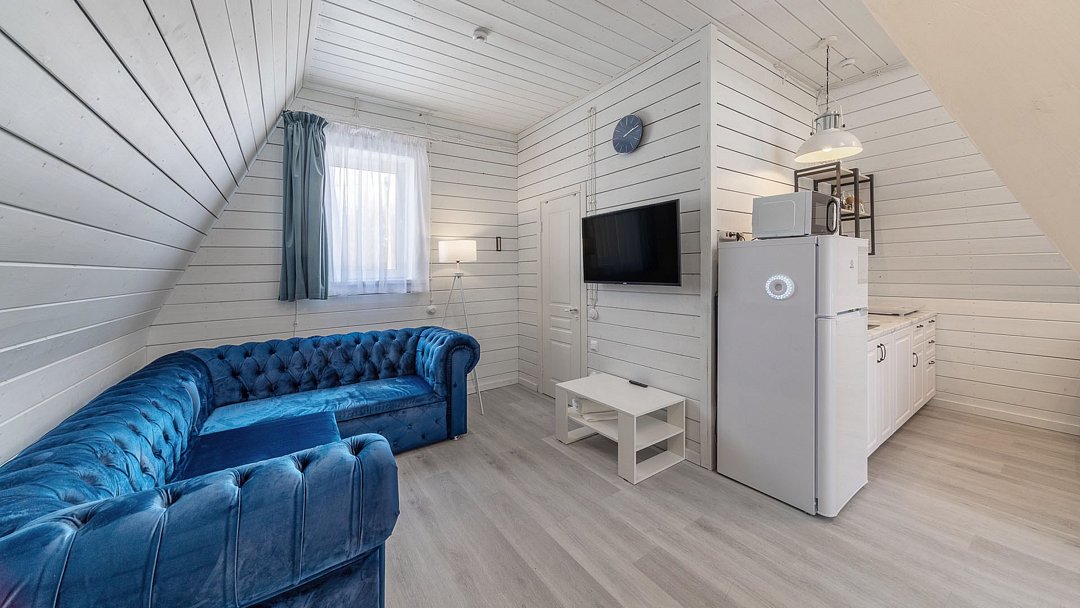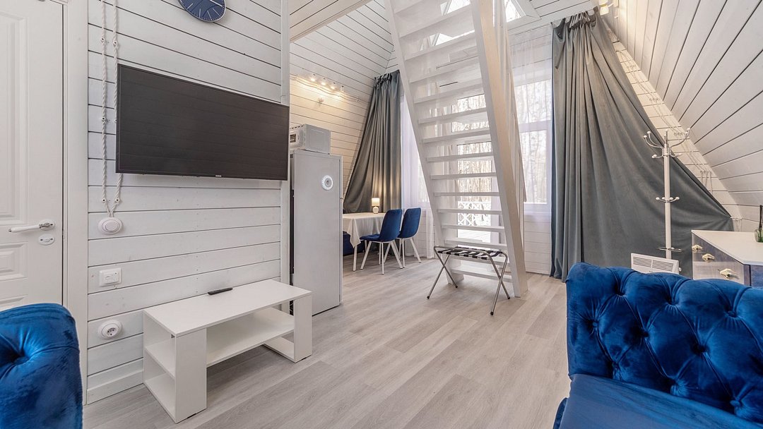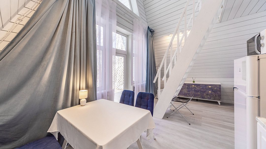 Дом представляет собой двухэтажный дом общей площадью 40 кв.м. Максимальная вместимость — 4 человека.