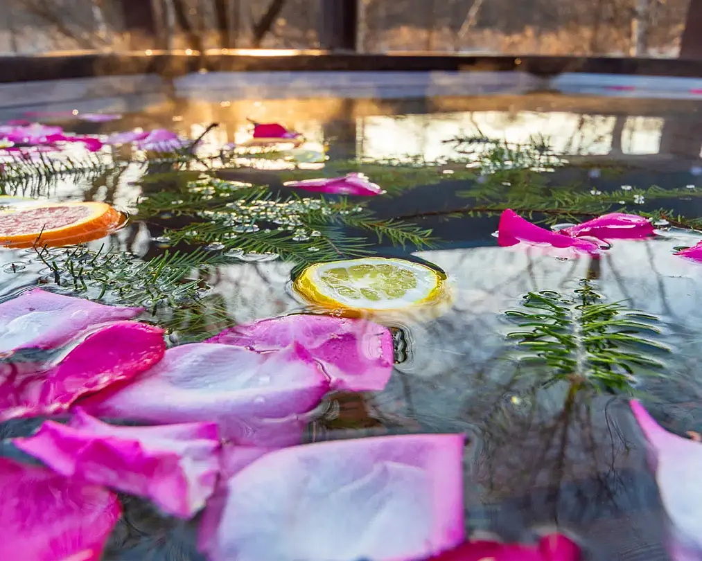На территории базы есть купель с горячей водой под открытым небом.