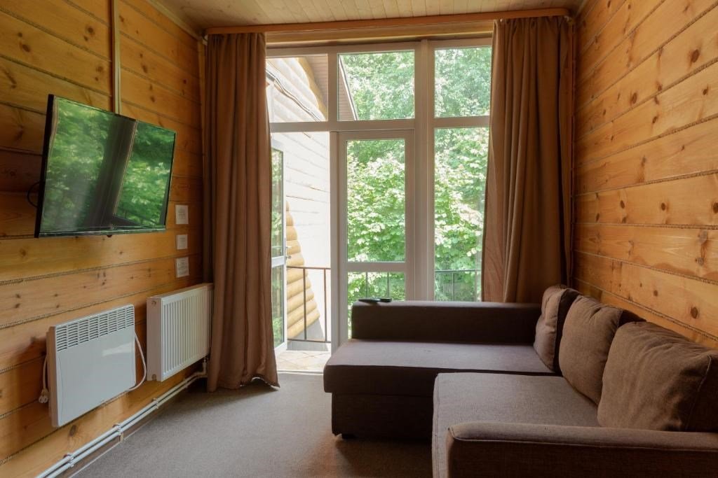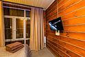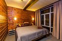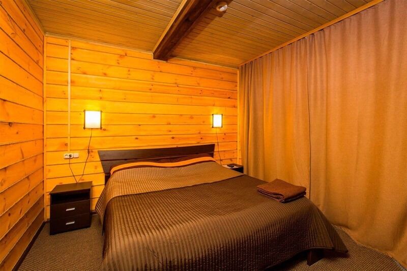 Просторный домик "Люкс" - для тех, кто не желает лишать себя комфорта во время отдыха. Две комнаты общей площадью 47 м 2, широкая двуспальная кровать (размер “King size”), два телевизора ( с плоским экраном и большим количеством каналов) и вся необходимая техника - вы будете чувствовать себя как дома! Вместимость до 5-ти человек. Спальня отделяется от гостиной при помощи коридора, а двери в обе комнаты закрываются. Благодаря этому отдыхающие смогут в полной степени насладиться отдыхом и уединением.
