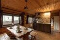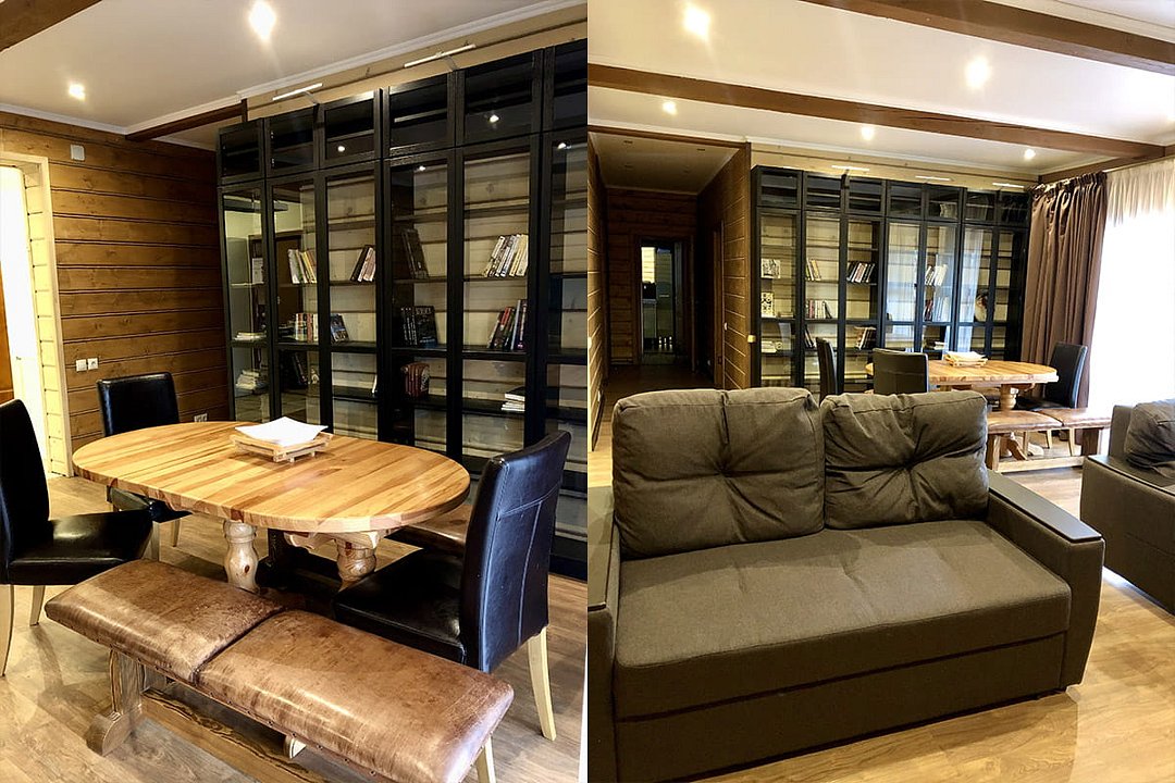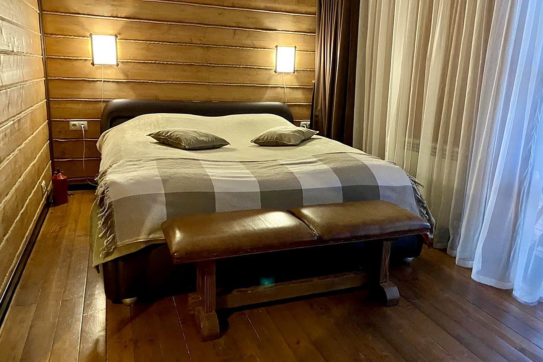Этот дом стал одним из самых любимых для гостей. Преимущество этого коттеджа — наличие ольховой бани. Ольха обладает целебными свойствами. При постройке использовались современные технологии, благодаря которым в бане легко дышится. После банных процедур можно расположиться в уютной спальне и насладиться полноценным отдыхом. Этот коттедж также оснащен современной кухней и имеет свою мангальную зону.