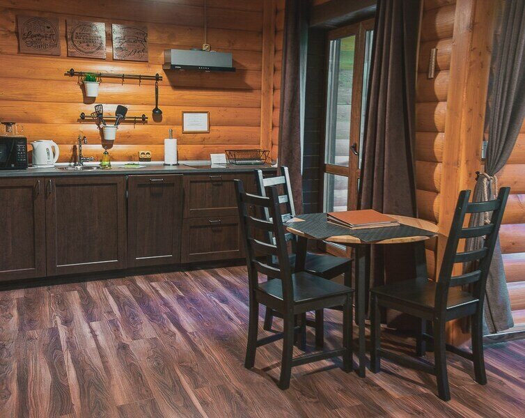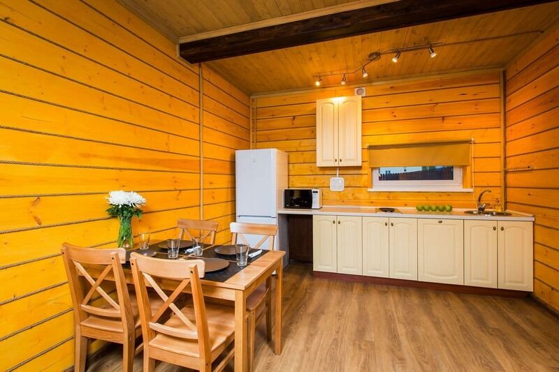 Кухня оснащена холодильником, микроволновой печью, столовыми приборами, кухонным столом. Вы можете готовить еду самостоятельно. Отдыхать здесь можно круглогодично. В зимнее время постоянно работает отопление.