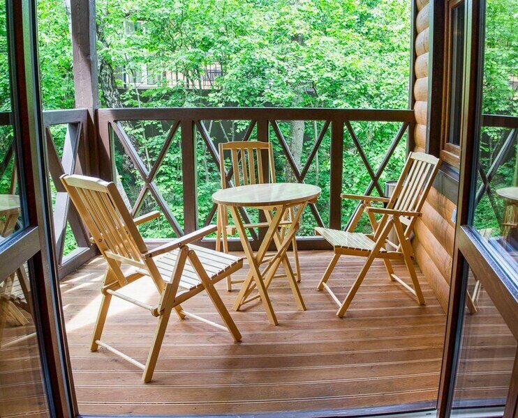 Коттедж имеет собственную встроенную террасу с уютной мебелью, которая гармонично дополняет загородный дом. С этой террасы словно рукой можно дотянуться до крон деревьев, почувствовать ласковое дуновение ветра и пьянящего свежего воздуха. Здесь приятно жить, комфортно отдыхать, получать удовольствие, наслаждаясь каждым днем отдыха.