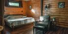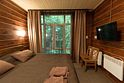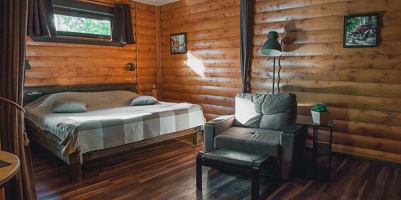 Домик категории «Полулюкс для двоих» способен принять на отдых до 3 человек. В спальне расположена большая кровать (размер “King size”) и удобное кресло - служит дополнительным спальным местом.