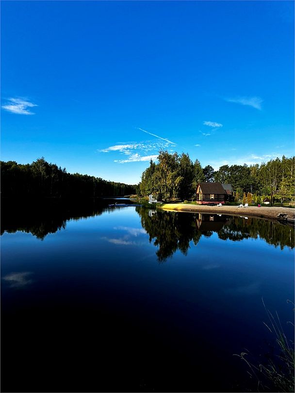 Изба «Лесника» - коттедж категории VIP. Дом с камином и приватным бассейном-джакузи на веранде, а также со своей приватной территорией 25 соток в хвойном лесу, где расположена мангальная зона и костровая чаша с креслами. Расположен в лесной части Усадьбы в сосновом лесу. Вид на лес и озеро.