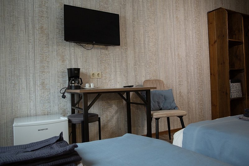 2-х местные с раздельными или одной двуспальной кроватью; все номера с собственной ванной комнатой (душевая кабина, раковина, унитаз, полотенца и принадлежности индивидуального пользования), TV и бесплатный Wi-fi.
