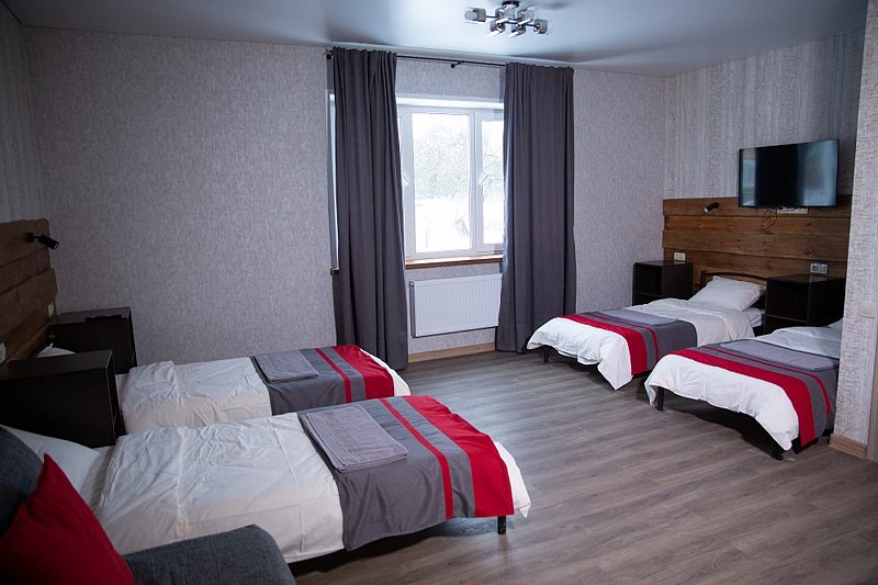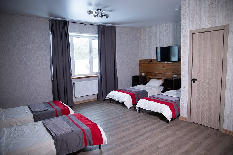 4-х местные с 4-мя отдельными кроватями; все номера с собственной ванной комнатой (душевая кабина, раковина, унитаз, полотенца и принадлежности индивидуального пользования), TV и бесплатный Wi-fi.