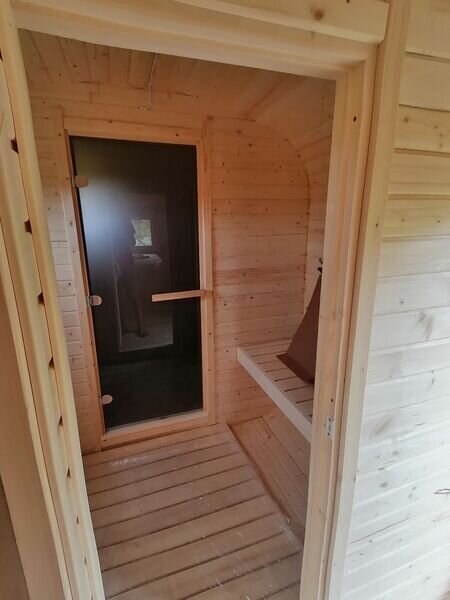 В предбаннике полноразмерный стол с самоваром и лавочки на 4-6 человек, большое окно.